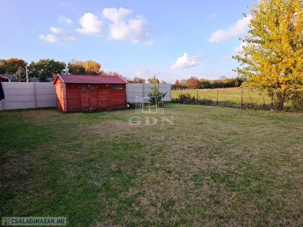 A kert rendezett, öntözése fúrt kútról biztosított, a kerti szerszámok tárolására 12 m2 kerti tároló épült.