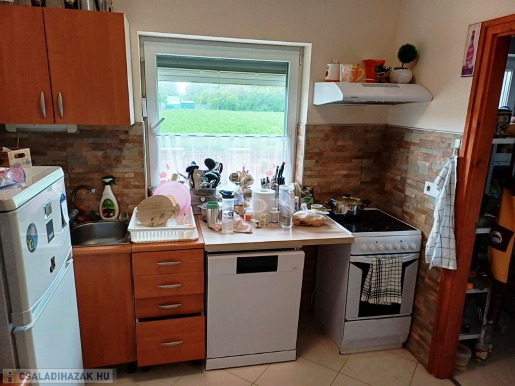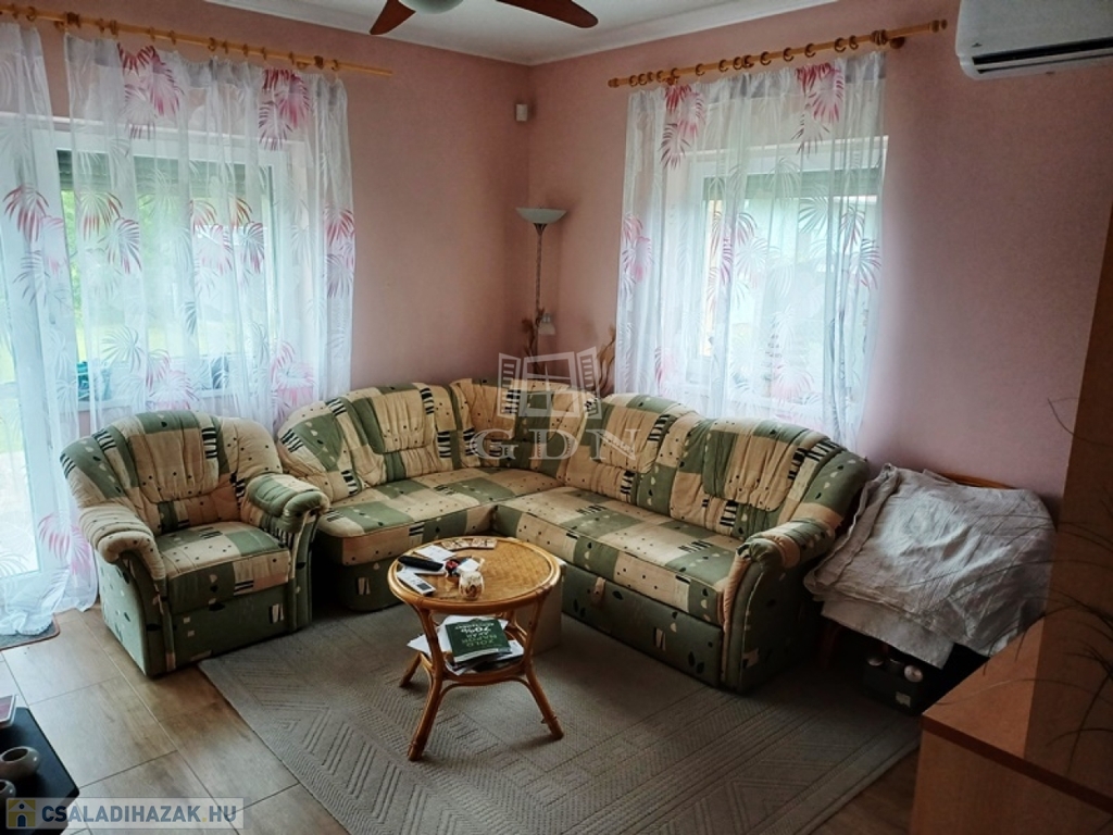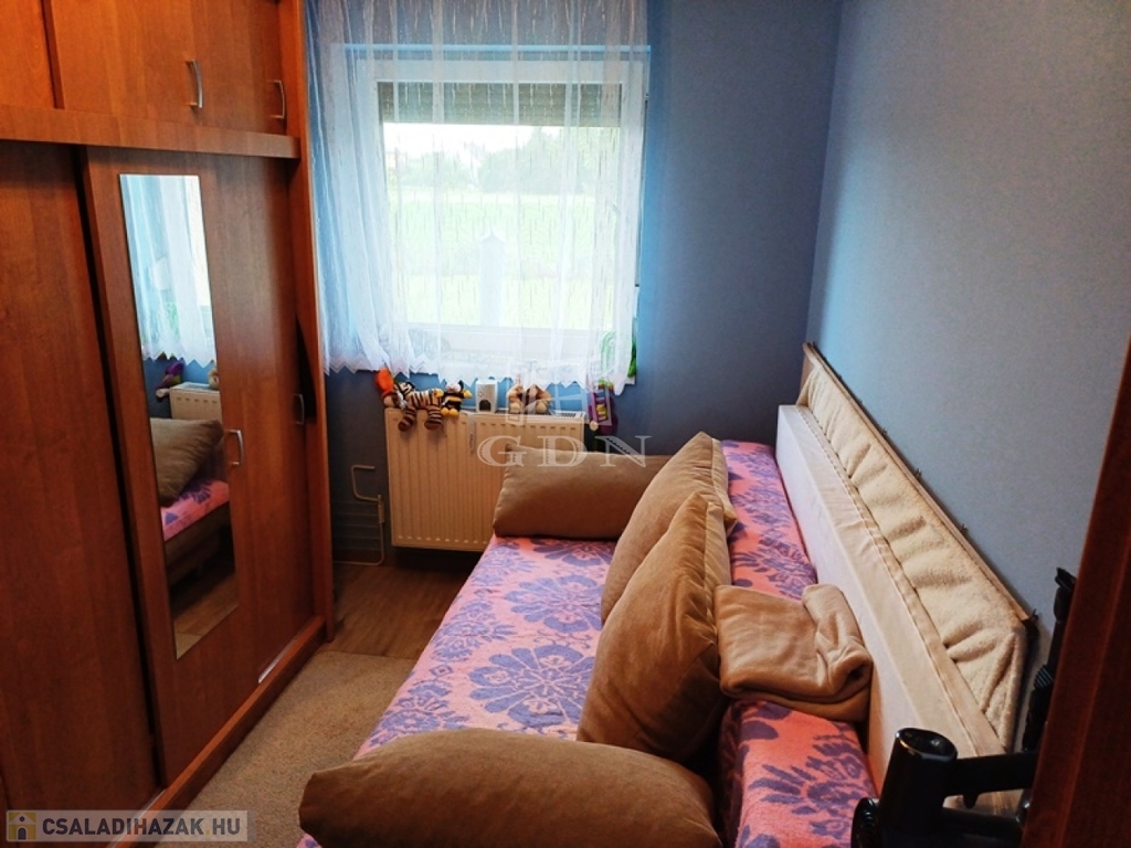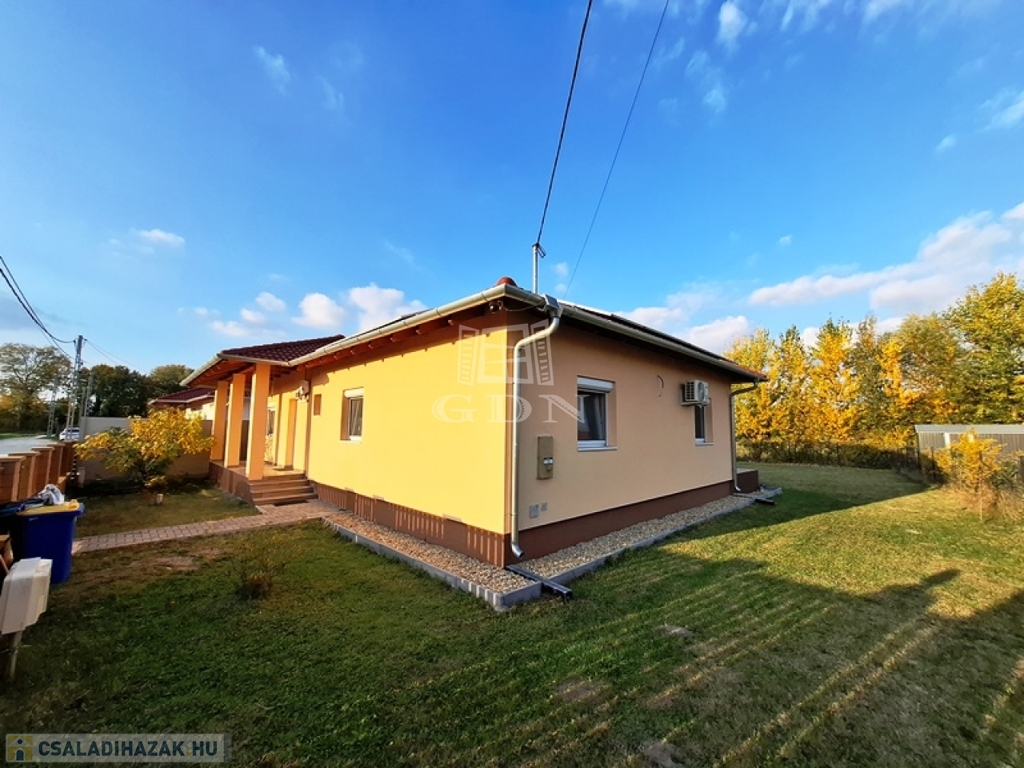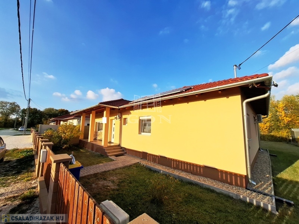 A nettó 104 m2-es családi ház 2018-ban épült, egy 700 m2-es összközműves telken, beton alapra, tégla falazattal, fa födémmel, cserépfedésű tetővel.