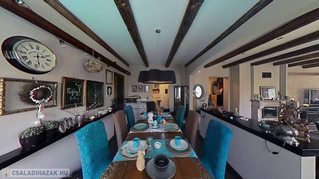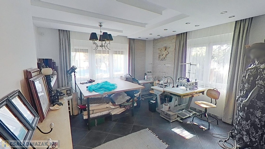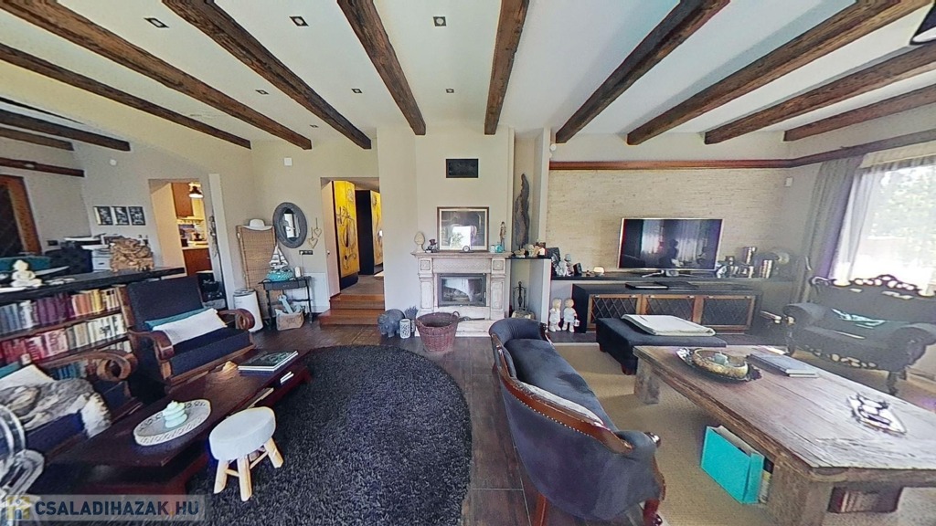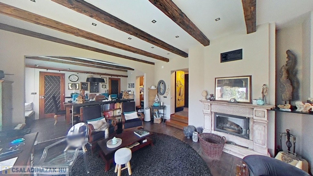 A földszinten egy gyönyörű, 70 nm-es nappali/étkező lehet a családi élet központja, mely hatalmas ablakokkal és a medence/kert felé nyíló nagy teraszajtóval bír, így a nap minden időszakában világos. Az étkező egy légtér a nappalival, de bútorral, valamint egy egy lépcsőnyi szinttel mégis jól elkülönül attól. A földszinten van még két nagy méretű háló (melyből egyik jelenleg a home office, itt szintén működő kandallót találunk), egy fürdő/wc, valamint egy külön wc.
