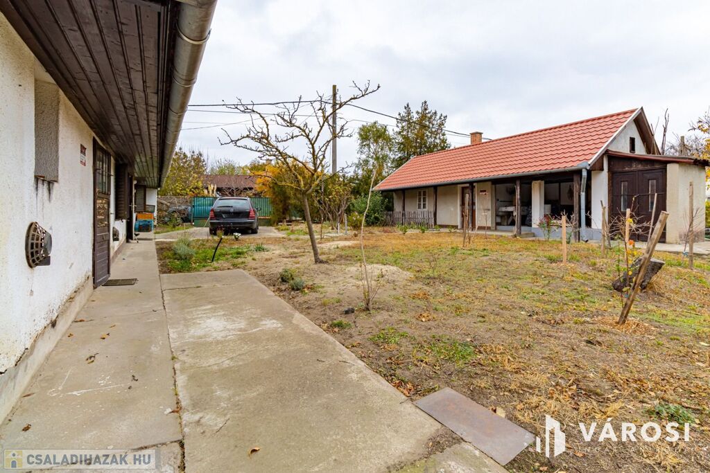 For sale in Ráckeve, an inner-area (belterületi), unencumbered small family house classified on the title deed as “residential building and yard”, featuring an outbuilding that can be converted into living space, a cellar beneath its terrace, and a drilled well.