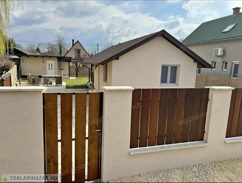 -ÉPÍTETT KERÍTÉS AZ UTCAFRONTON: SZÉLES MOTORIZÁLT NAGYKAPUVAL (így akár nagyobb autóval teherautóval is be lehet állni az udvarra) és kis kapu is rendelkezik.