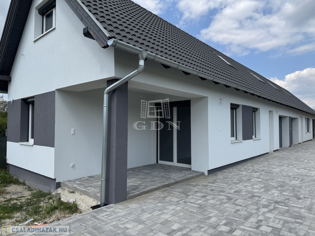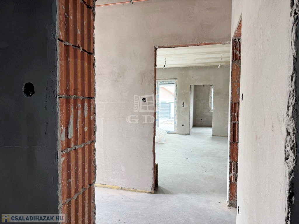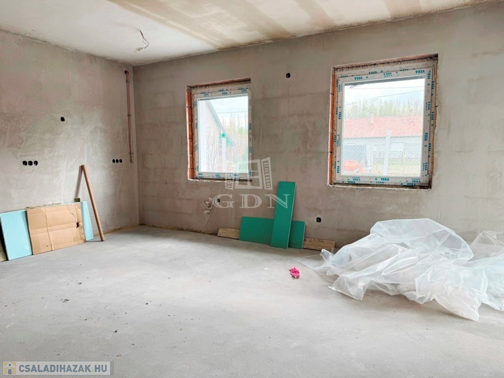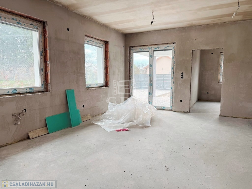 A lakás 90% készültségi állapotban van. 102 nm nettó alapterületű 2 szintes, +19 nm fűtött garázzsal. Összesen 121m2. 3 szoba amerikai konyha, nappali, fedett terasz, dupla komfort, gardrób. 33% helyben előállított villamosenergia, amiről napelemek gondoskodnak. A locsoláshoz fúrt kút biztosítja a vizet. Klíma kiállások előkészítve. Riasztórendszer kiépítve. Az konyhabútor elkészítéséhez szakembert tudunk biztosítani!