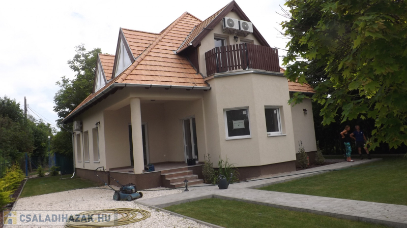 Ráckevén, 100m-re a Kis-Dunától, csendes zsákutcában, hangulatos,134 nm-es ,tégla építésű, két szintes , tulajdoni lap szerint üdülő besorolású nyaraló eladó.Az ingatlan Somlyószigeten, aszfaltos út mellett található.Az ingatlant 2002-ben kezdték el építeni téglából, cserépfedéssel.A földszint 78 nm, plusz 7 nm terasz, a felsőszint 56 nm (45 nm)A földszinten egy tágasabb előtérbe lépünk be, melynek jobb oldalán található a lépcsőház, balra pedig a lenti hálószoba nyílik. Az előtérből tovább haladva a hatalmas nappaliba jutunk, melynek két végében egy-egy félkör alakú kiszögellés található, melyből az egyik a konyha, a másik akár télikertnek is megfelel. A nappaliból nyílik még egy földszinti tusolós fürdőszoba is.Az emeleten egy előtérből nyílik 3 szoba, melyek közül kettő erkélyre nyílik. Fenn található megy egy fürdőszoba is, melybe fürdőkádat állítottak be.A telken vezetékes víz, csatorna, és villany található.A fűtést elektromos kazán szolgáltatja, valamint inverteres légkondicionáló berendezések segítenek a téli-nyári kellemes hőmérséklet biztosításában.Az ingatlan üdülőövezetben található, tehát nem CSOK-kompatibilis.Az ingatlan önálló telken helyezkedik el, teljesen körbekerített, a kert parkosítva van.ÁLLANDÓ LAKHATÁSRA IDEÁLIS VÁLASZTÁS.Az ingatlan megtekintése irodánkkal előre egyeztetett időpontban történik. Szívesen állunk rendelkezésre!