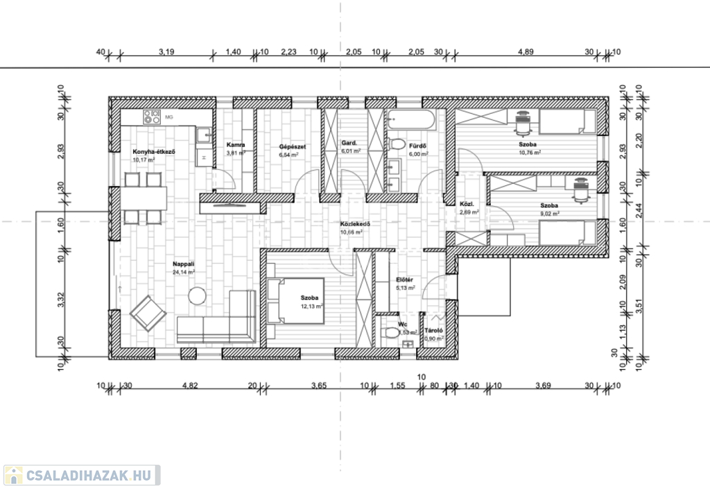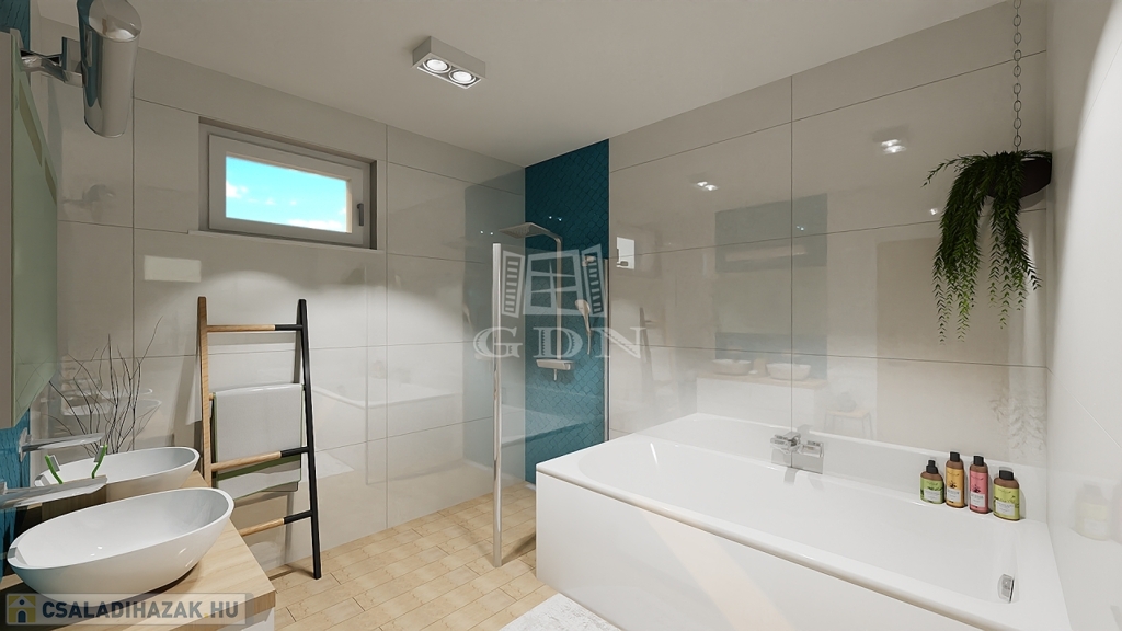 - fűtést és a melegvizet gázkazán biztosítja padlófűtéses hőleadással,