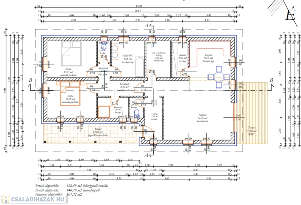 2,- nappali + 3 hálószobás kialakítás nettó 110 nm - 88.000.000.-Ft,