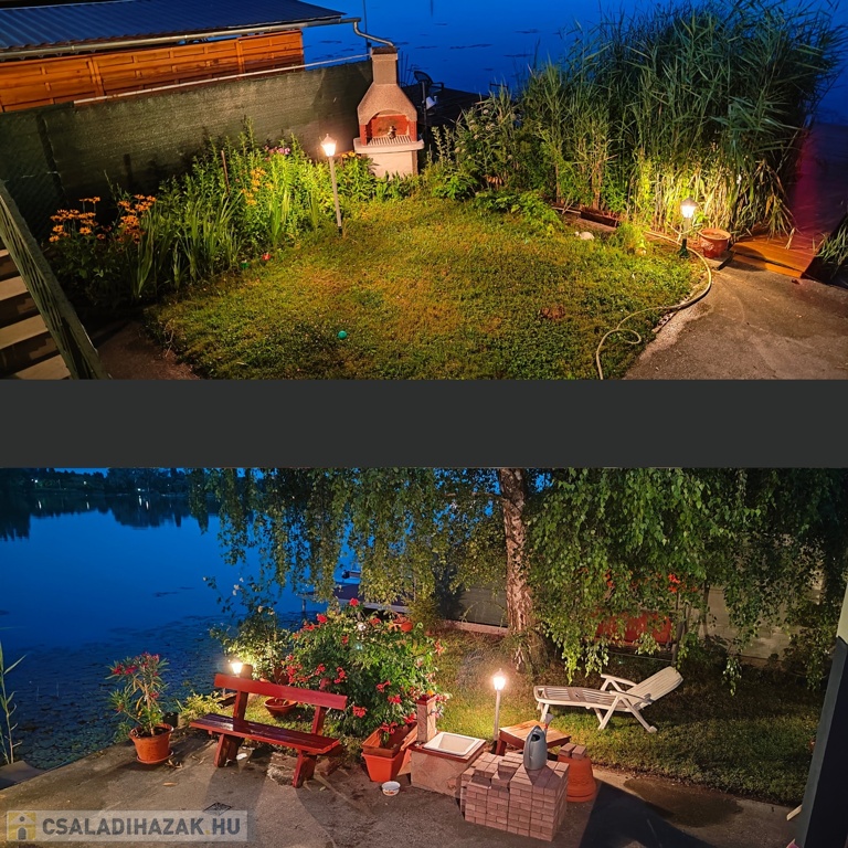 A ház hőszigetelt,radiátoros fűtéssel,saját stéggel, csónaktárolóval, telken belül gépjármű parkolóval is rendelkezik.