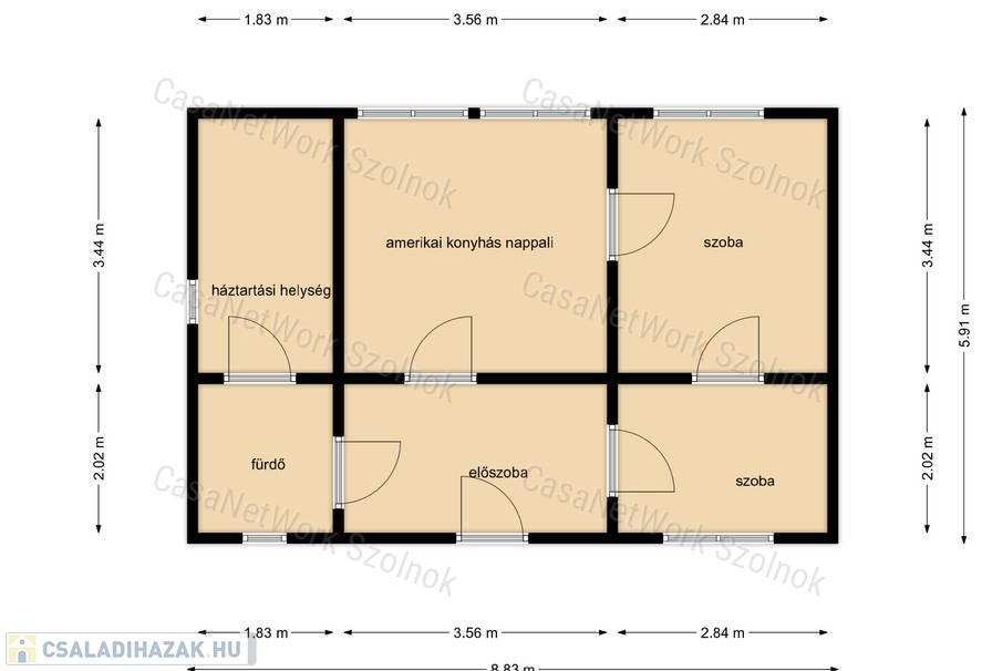 - a nettó lakótér 63 m2 amelyben a következő helyiségek találhatók: előszoba, konyha étkezővel , 2 külön nyíló szoba, fürdőszoba illemhelyiséggel együtt és egy mosókonyha