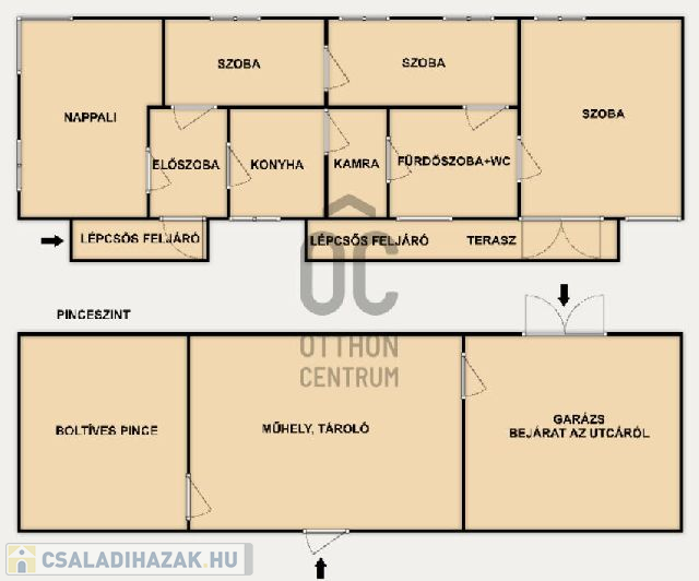 A lakóterület 106 nm amely teljesen alápincézett (106 nm). A pincében boltíves borospince, táróló és garázsok kaptak helyet. Felhívnám a figyelmet, hogy további parkolóhely kialakítására van lehetőség akár a pincében akár a kert területén is.
