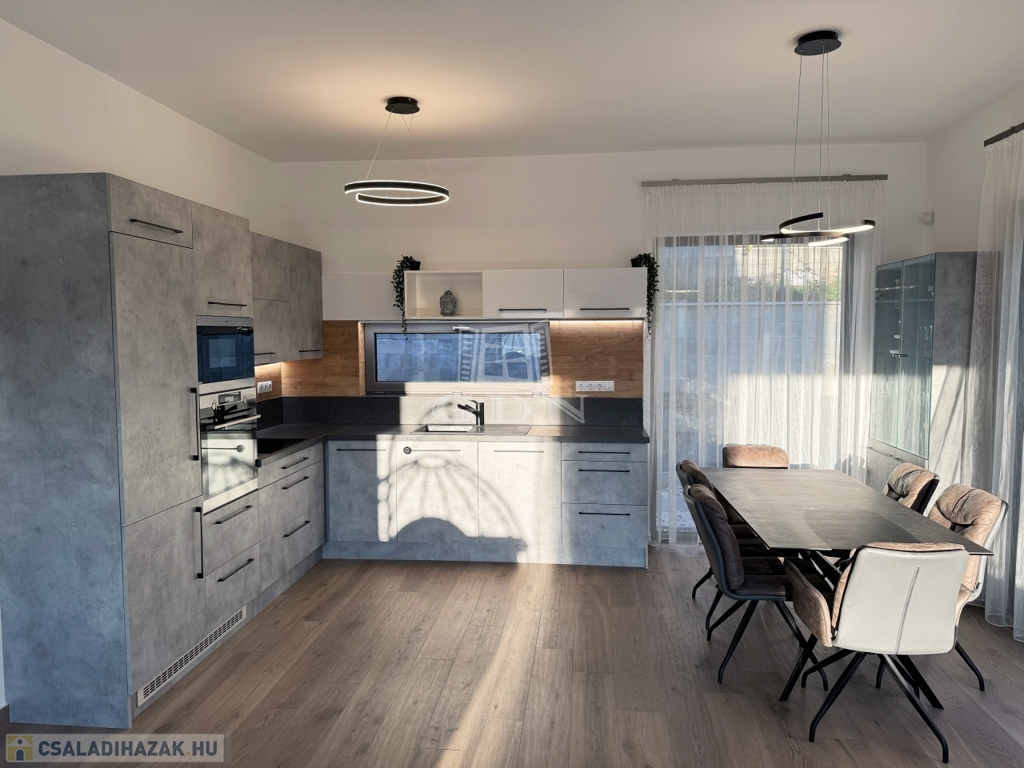 Remeteszőlős nyugodt, csendes részén eladó, a fotókon látható 1 szintes, 165 négyzetméter alapterületű, 2023-ban épült modern családi ház, közvetlenül az erdő szélén. A környéket a Remete-hegy, a Hosszúerdő-hegy és a Remete szurdok öleli körül, itt rengeteg barlang és más karsztos formáció fedezhető fel, ami remek lehetőséget biztosít a természetkedvelők számára. Mindössze 20 méterre elérhetők a természetvédelmi területek, amelyek friss levegőt és kiváló kikapcsolódási lehetőséget nyújtanak. A környék biztonságos, ideális azok számára, akik közel szeretnének élni a természethez, de fontos számukra a városi élet elérhetősége is. A közeli Amerikai Nemzetközi Iskola, a 63-as busz megállója, valamint a Linum udvar és a Hűvösvölgyi Stop Shop kényelmes bevásárlási lehetőségeket kínálnak, Budapest központja pedig mindössze 20 perces autóútra található.