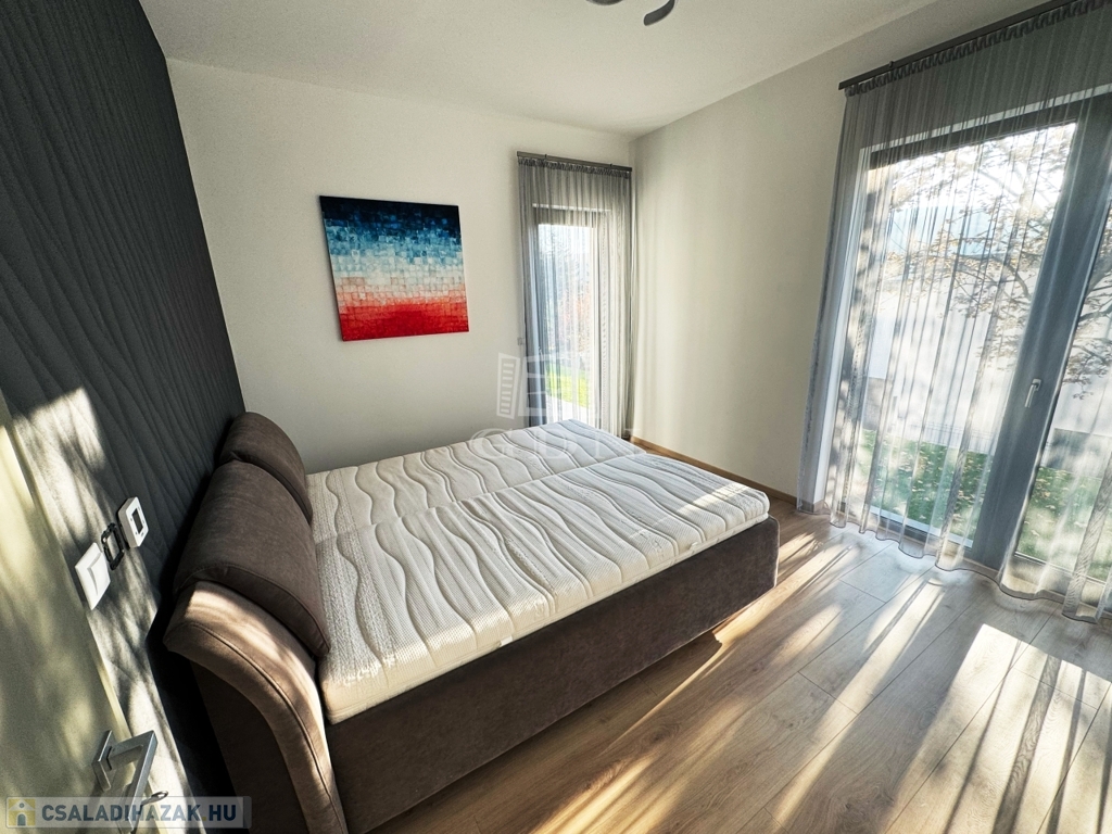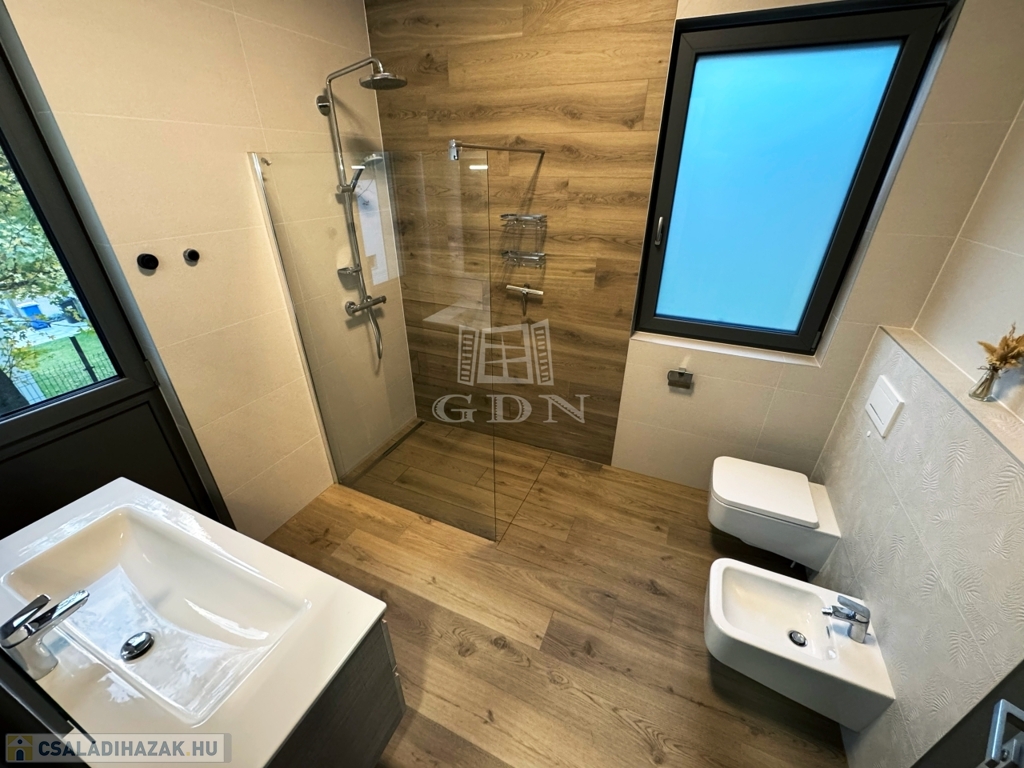 A ház alacsony energiaigényű kialakítással és 3 méteres belmagassággal rendelkezik. A fűtést padlófűtés biztosítja, míg a hűtést mennyezeti rendszer végzi, mindkettő a Daikin Altherma hőszivattyúval működik, amelyhez egy 300 literes melegvíztároló is tartozik. A tető déli tájolású, ideális napelemek telepítésére. Az ingatlan NGBS épületautomatikai rendszerrel van felszerelve, amely külön szobánként szabályozható termosztátokkal rendelkezik. A háromrétegű Hoffstadter nyílászárók, valamint az aluminium motoros redőnyök minden helyiségben biztosítják a hő- és hangszigetelést. További extra kényelmi funkciók közé tartozik a riasztó, az automata öntözőrendszer, a vízlágyító, és a beépített gardróbszekrényekkel felszerelt tárolóhelyiség, pliszés szúnyoghálók.