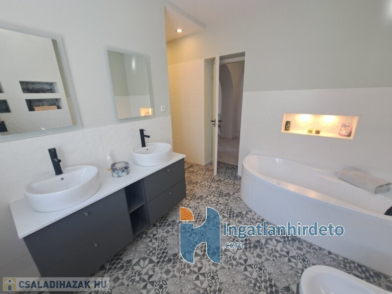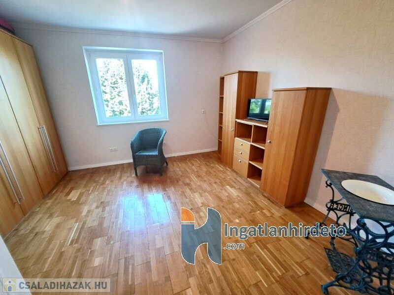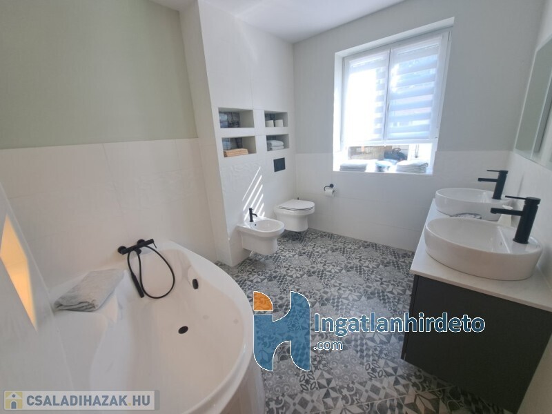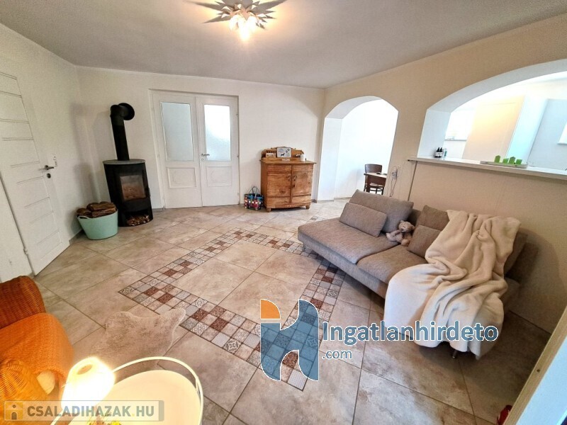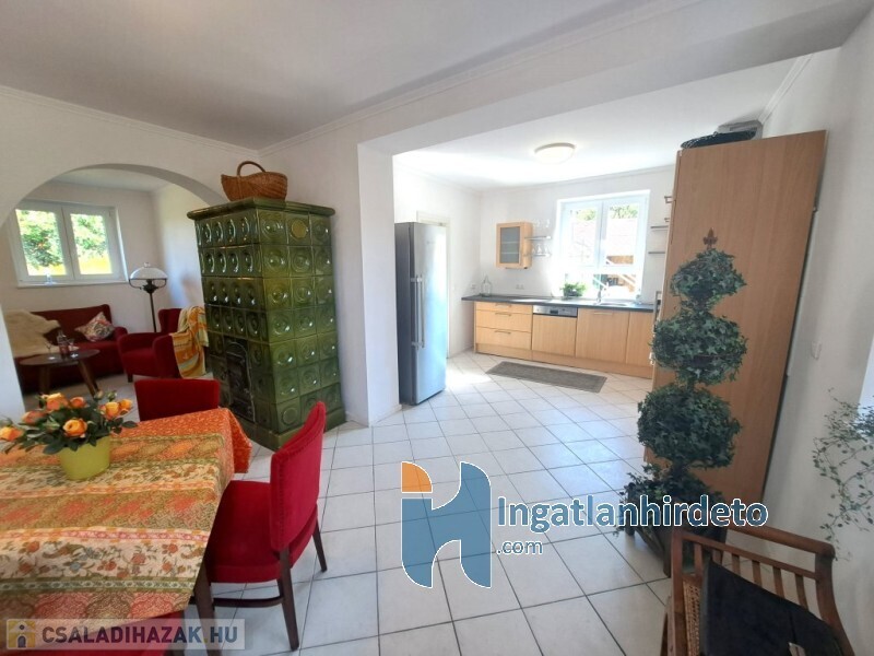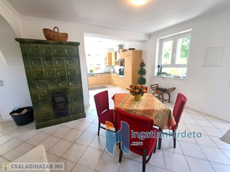 Elhelyezkedése: Zöldövezet Tájolása: Nyugati tájolású Állapota: Használt - felújított Komfort besorolása: Komfortos Építési éve: 1996 Alapterülete: 165 m2 Telekterülete: 2 045 m2 Szobák száma: 6szoba Felújított: Felújított Felújítás éve: 2023 Felújítás során elvégzett munkák: Festés, Villanyrendszer csere, Csempe csere, Járólap csere, Fűrdőszobai szaniterek cseréje, Külső hőszigetelés, Hőszigetelt nyílászárók beépítése Közművek: Víz, Villany Vízellátás: Vezetékes víz Melegvíz-ellátás: Villanybojler Áramellátás: 230V/380 V Fűtés módja: Fa, Villany Fűtés típusa: Cserépkályha, Padlófűtés Homlokzat állapot: Jó Építési mód: Tégla Tető formája: Magas Tető anyaga: Cserép Parkolási lehetőség: Telken Jellemzői: Jó közlekedés, Két bejárat, Légkondicionáló, Étkező, Udvari terasz, Amerikai konyha, Beépített konyhabútor, Kert, Kerítés, Zöldterület Energetikai besorolás: E Egyéb jellemzők: Terasz, Melléképület, Tetőtér
