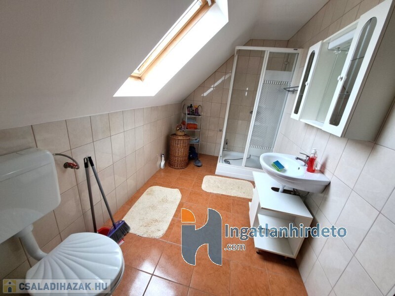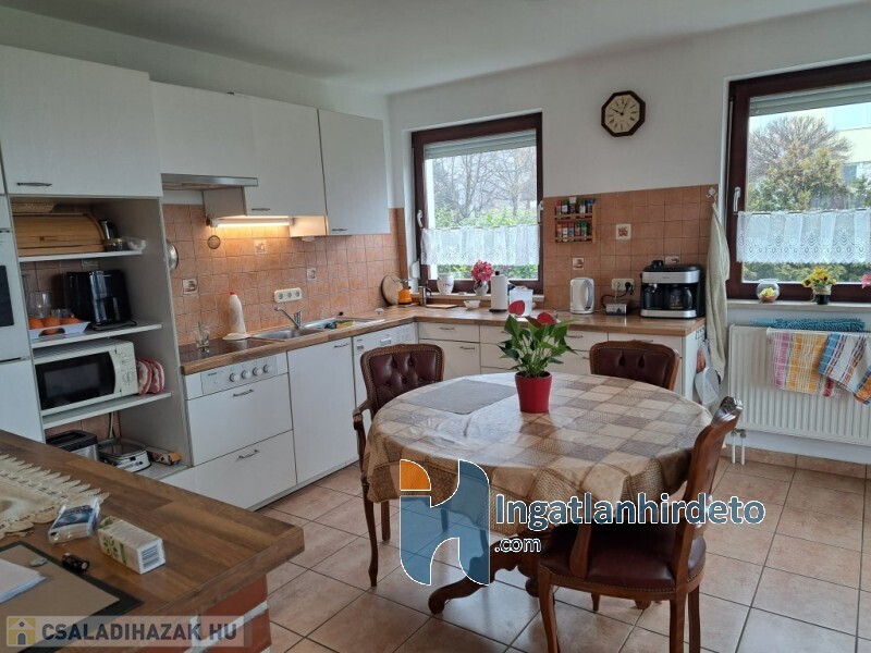 Elhelyezkedése: Belterület Tájolása: Déli tájolású Állapota: Kiváló Komfort besorolása: összkomfortos Építési éve: 2007 Alapterülete: 205 m2 Telekterülete: 1 252 m2 Szobák száma: 5szoba Közművek: Gáz, Víz, Villany, Csatorna Gázellátás: Vezetékes Vízellátás: Vezetékes víz Melegvíz-ellátás: Gázkazán Áramellátás: 230V/380 V Fűtés módja: Gáz, Fa Fűtés típusa: Cirkó, Kandalló Homlokzat állapot: Jó Építési mód: Tégla Tető formája: Magas Tető anyaga: Cserép Parkolási lehetőség: Garázsban Kilátás: Utcafronti kilátás, Hegyi panoráma Jellemzői: Csendes környék, Redőny, Udvari terasz, Beépített konyhabútor, Autóbeálló, Kert, Kerítés, Ipari áram, Parketta burkolat, Zöldterület, Beépített tetőtér Energetikai besorolás: B Egyéb jellemzők: Terasz, Pince, Tetőtér Tv, Internet: Kábeltévé, Internet Közelben: Iskola, Óvoda, Orvosi rendelő, Bolt Terhelések: Tehermentes ingatlan