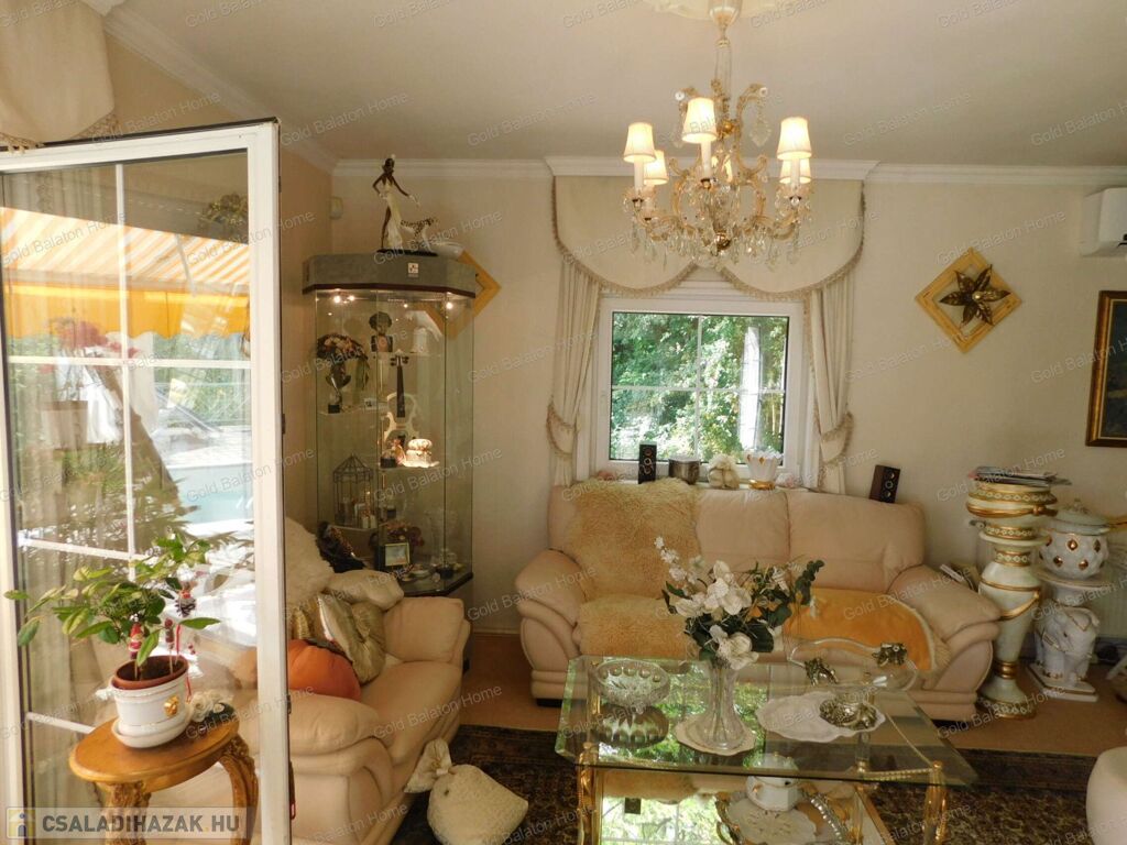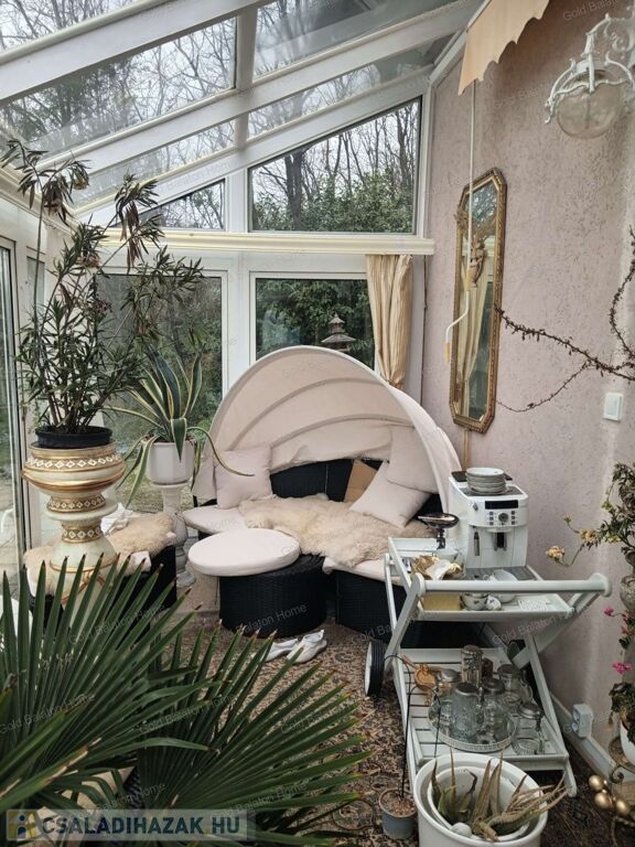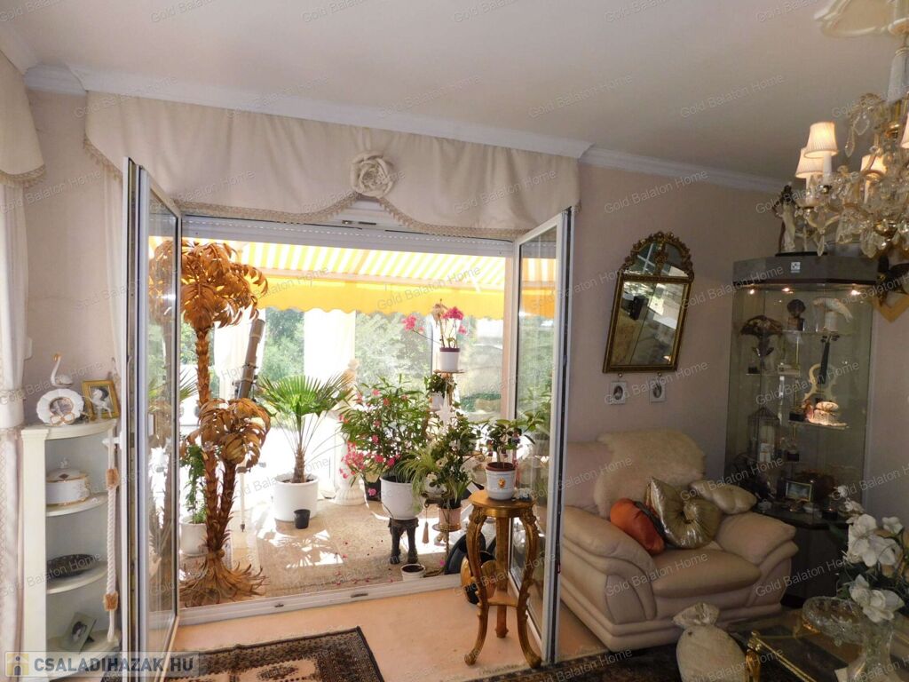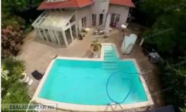 Két hálószobás, nagy nappalis, úszómedencés, napozó és grillező teraszos ház, dupla garázzsal, kondi teremmel és tájra néző panorámával a Hévízi tótól mindössze 5000 méterre, a Balatontól 9000 méterre eladó.
