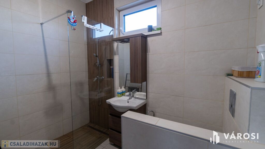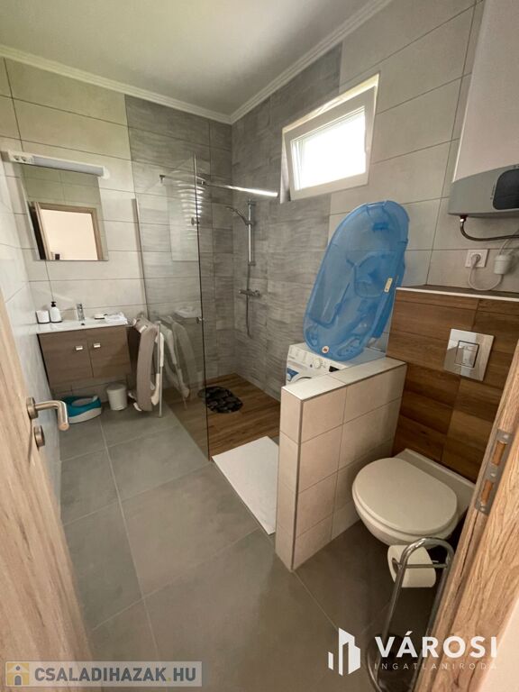 Prémium anyagok, igényes burkolatok, műanyag nyílászárók redőnnyel és szúnyoghálóval, valamint dekorfalak jellemzik a modern, gondozott otthont.