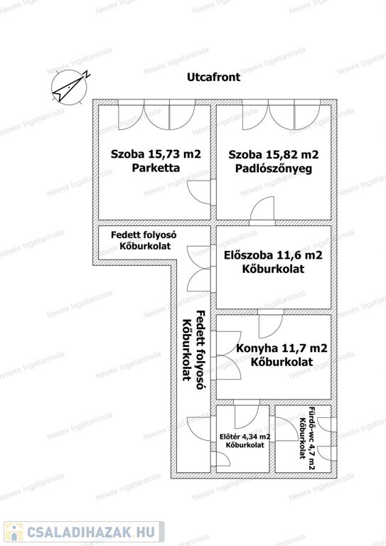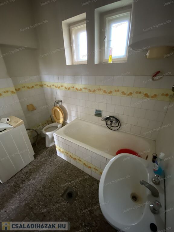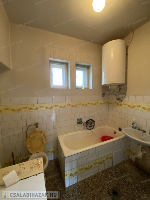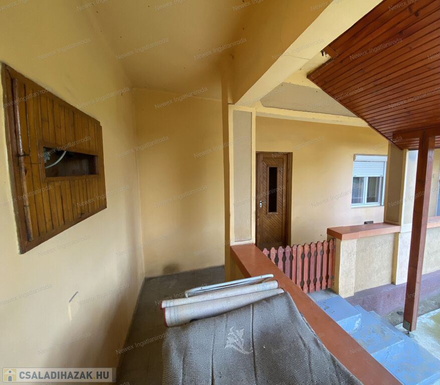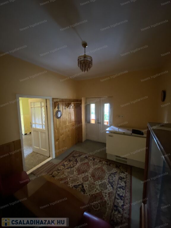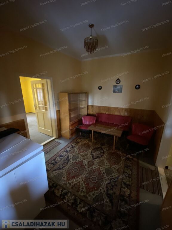 A ház helyiségei praktikus elrendezést kínálnak: két egymásba nyíló, tágas szoba, méretes előszoba, konyha, valamint az előtérből nyíló fürdőszoba-wc alkotják a belső tereket. Az épületben az ivóvíz és a szennyvízhálózat rendelkezésre áll, a fűtést gázkonvektorok biztosítják, de a kiépített kémények lehetővé teszik kandalló vagy kályha bekötését is másodlagos fűtési opcióként. A melegvizet villanybojler szolgáltatja, az ingatlan továbbá 3x16 A áramellátással rendelkezik.