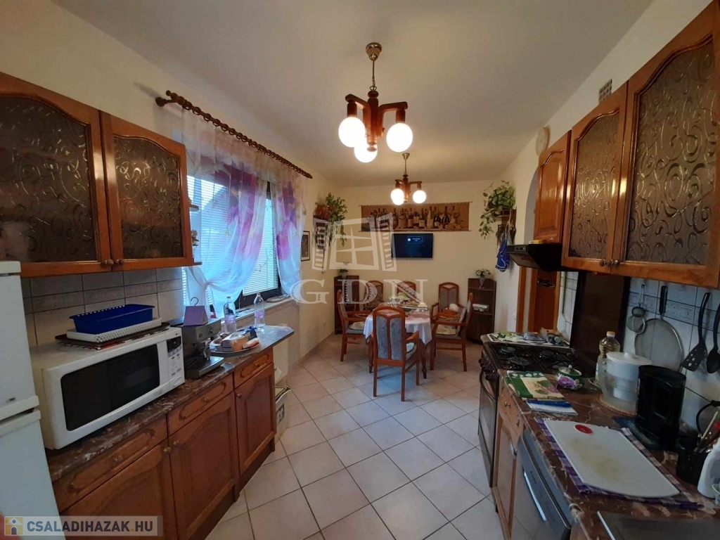 A tégla építésű ingatlan földszintjén konyha+étkező, nappali, szoba háztartási helyiség, wc, közlekedő, garázs és egy 25 m2-es terasz került kialakításra. Az emeleten 3 szoba, fürdőszoba és 6 m2-es terasz található.