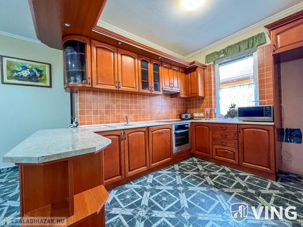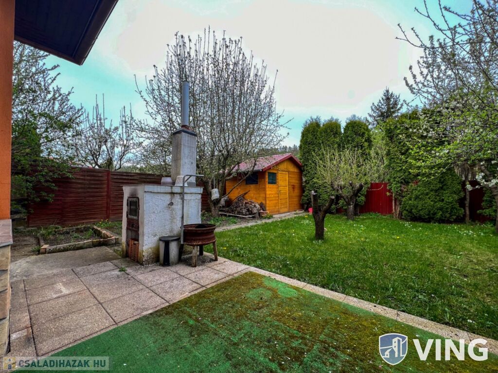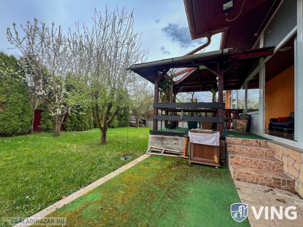 Az ingatlanhoz tartozó telek cca. 300 nm nagyságú, körbekerített, udvari gépkocsi beálló, nyitott terasz, kerti tároló, kemence, fúrt kút, tuják, gyümölcsfák találhatók.