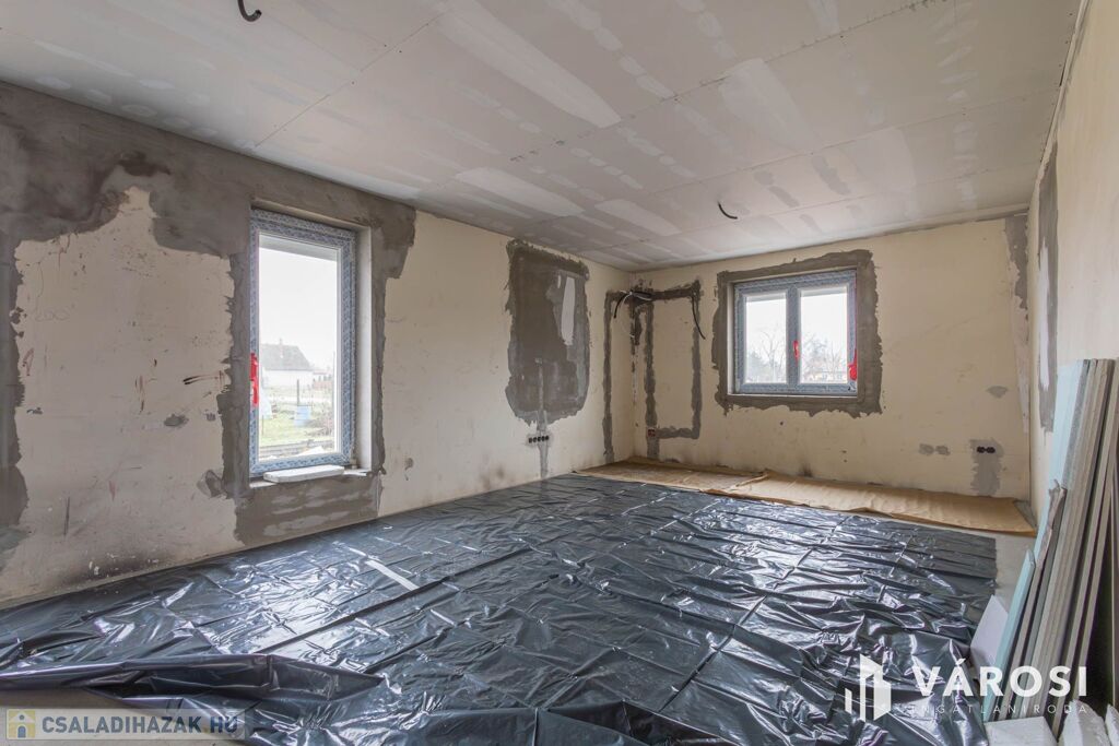 Eladó Sándorfalva csendes utcájában teljeskörű felújításon áteső nagy családi ház. A családi ház '95-ben épült téglából, betonozott alappal. Teljeskörű műszaki felújításon esik át, csak a falak maradtak a felújítás során. Új tetőszerkezet és héjazat került felrakásra kőzetgyapot szigeteléssel, a falak külső szigetelést kaptak és a nyílászárócsere is megtörtént. Az aljzatcserének köszönhetően új padlófűtés került kiépítésre modern kondenzációs gázkazánnal. A teljes villanyvezeték csere is megtörtént.