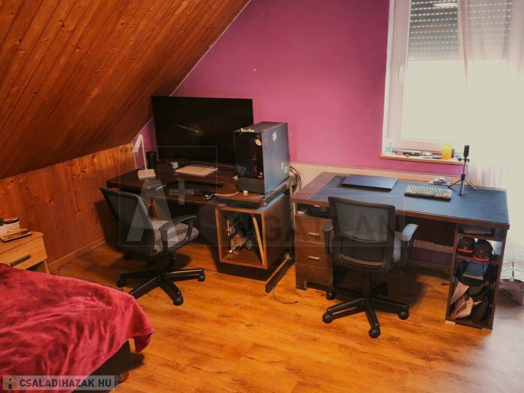 A ház átgondolt belső terekkel rendelkezik, jól karbantartott. A telek gondozott, egy része gyümölcsfákkal beültetett, emellett a továbbiakban lehetőséget biztosíthat két különálló ingatlan létrehozására is.