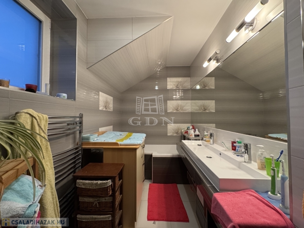 Az emeleten 3 hálószoba, gardrób, fürdőszoba található.