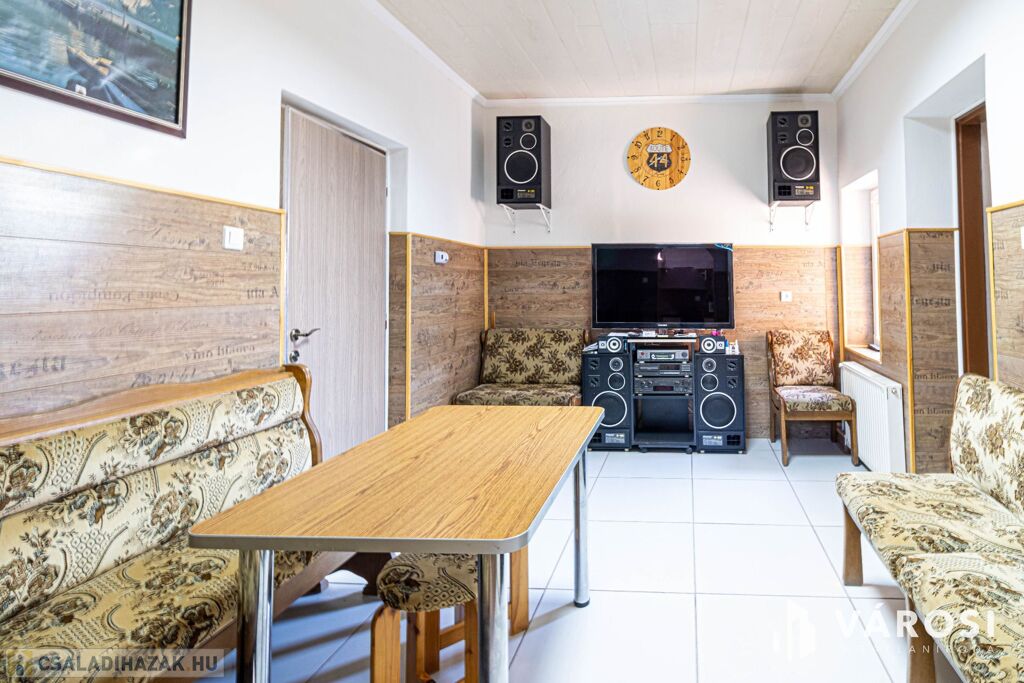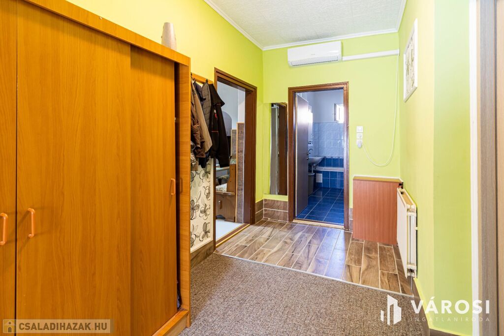 Hasznos alapterülete 138 m², amely a következő helyiségekből áll: 3+2 szoba, folyosó, konyha (felújított konyhabútorral), külön étkező, fürdőszoba WC-vel, kazánház, kamra, tároló.