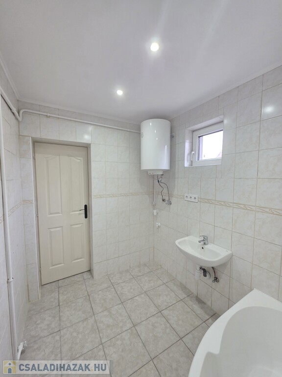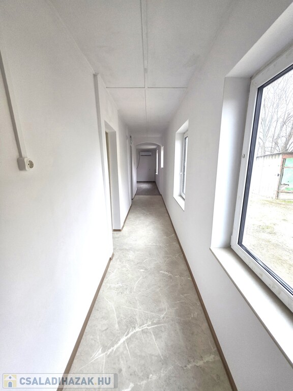 A ház elrendezése ideális, folyosóról nyíló szobák, konyha étkető, külön fürdőszoba és mellékhelyiség.