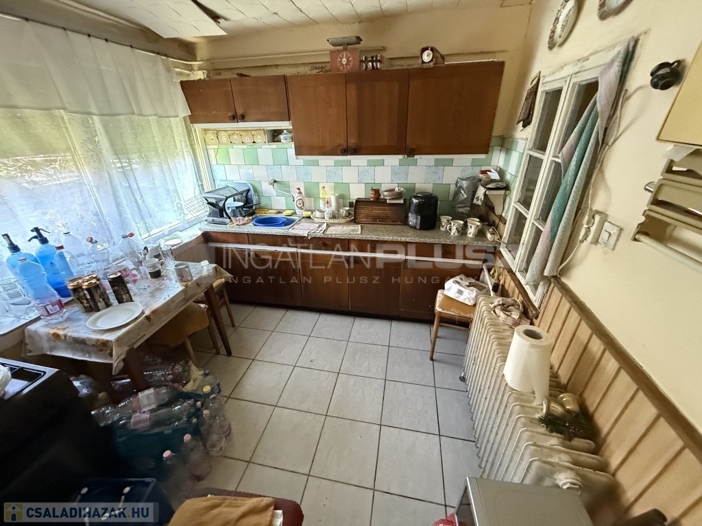 -Helyiségei: 2 szoba, 1 félszoba előtér, konyha, kamra, fürdő-wc, kazánház, tároló.