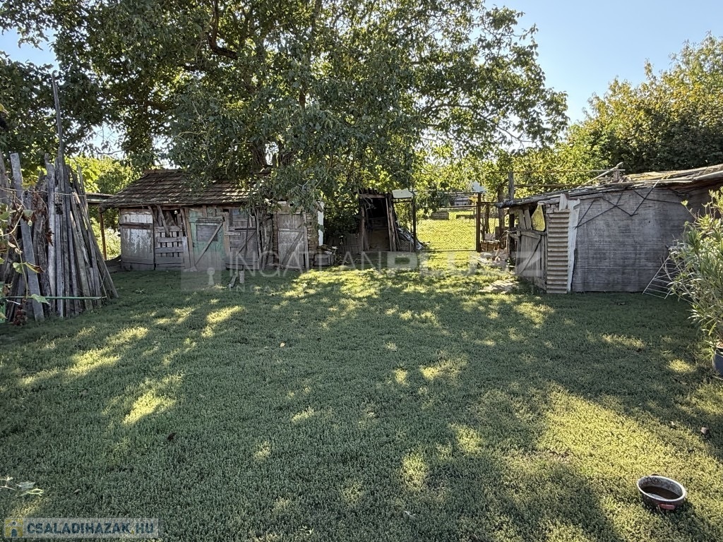 -Garázzsal, melléképületekkel, ásott kúttal.