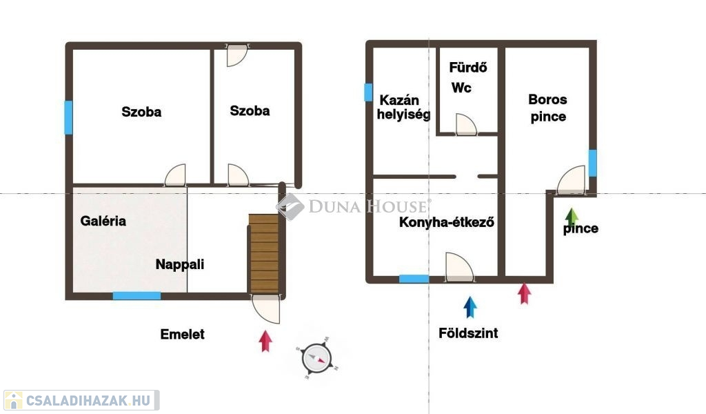Az emeleti részen 2 szoba és egy galériával rendelkező nappali is található. További bővítési lehetősé a padlástér, vagy akár a ház nyugati oldala felé is biztosított.