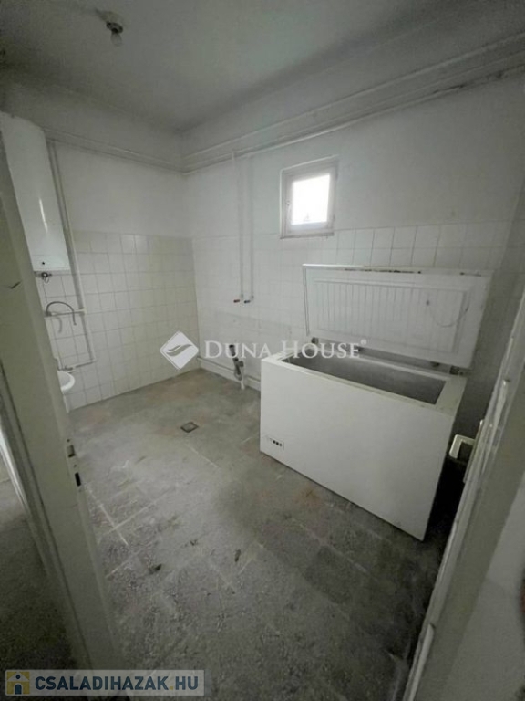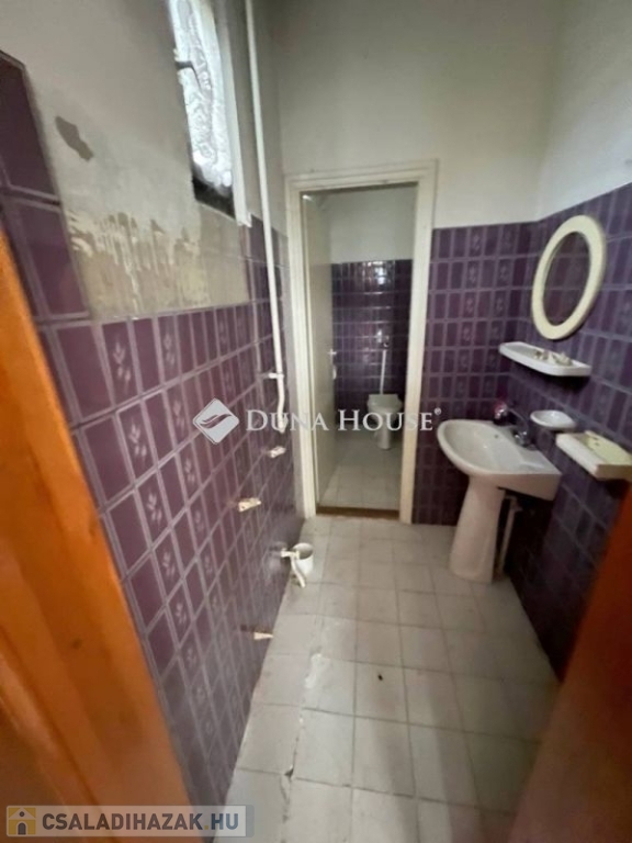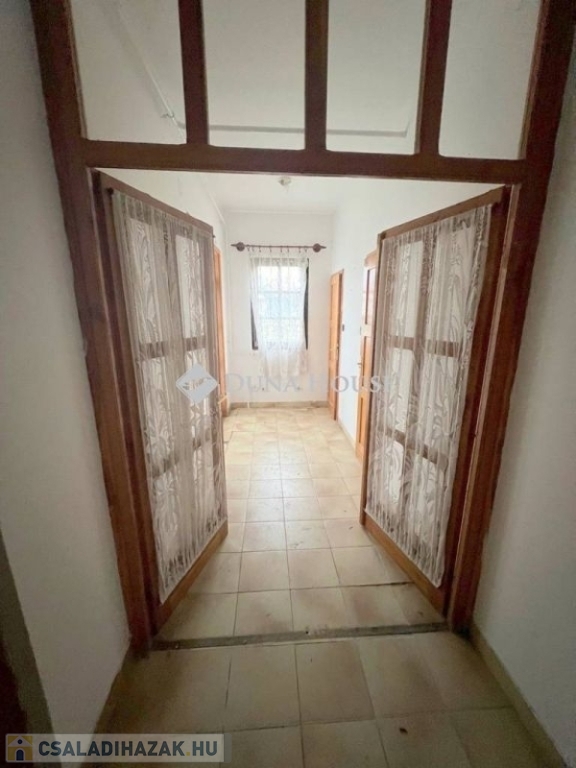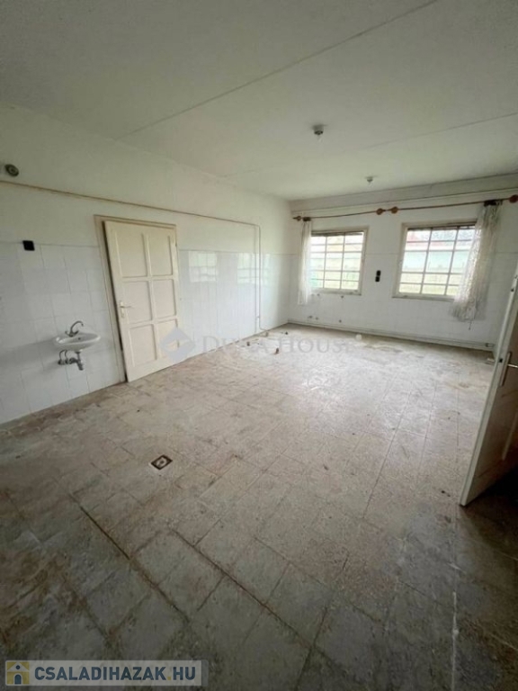 A nagyobbik felépítmény kb. 140m2-es, a házban korábban étterem üzemelt. Belső terei jelenleg ennek megfelelően vannak kialakítva, családi házzá, vagy két különnyíló lakássá is átalakítható. Az ingatlan belső állapotát tekintve felújításra szorul, statikailag megfelelő állapotban van. Külső homlokzata rendezett, teteje szép állapotú, modern, gázbeton cseréptető.