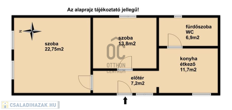- a lakóingatlan alapterülete 62,3 m2, melyben 2 szoba, konyha-étkező, fürdőszoba-WC, és egy előtér kapott helyet