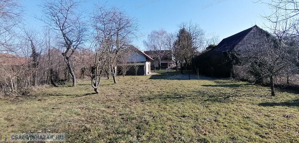 Az udvaron szép gyümölcsfák, hátrébb nagy melléképület található.