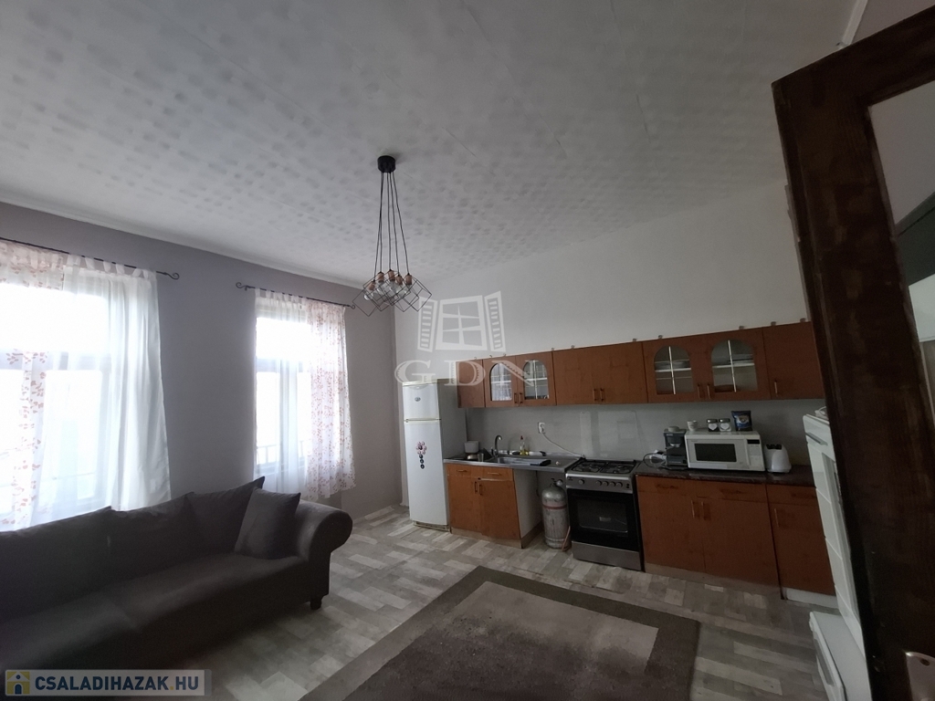 A felső szinten található két szoba és amerikai konyhás nagy nappali, valamint egy fürdőszoba (ami nemrég lett felújítva).