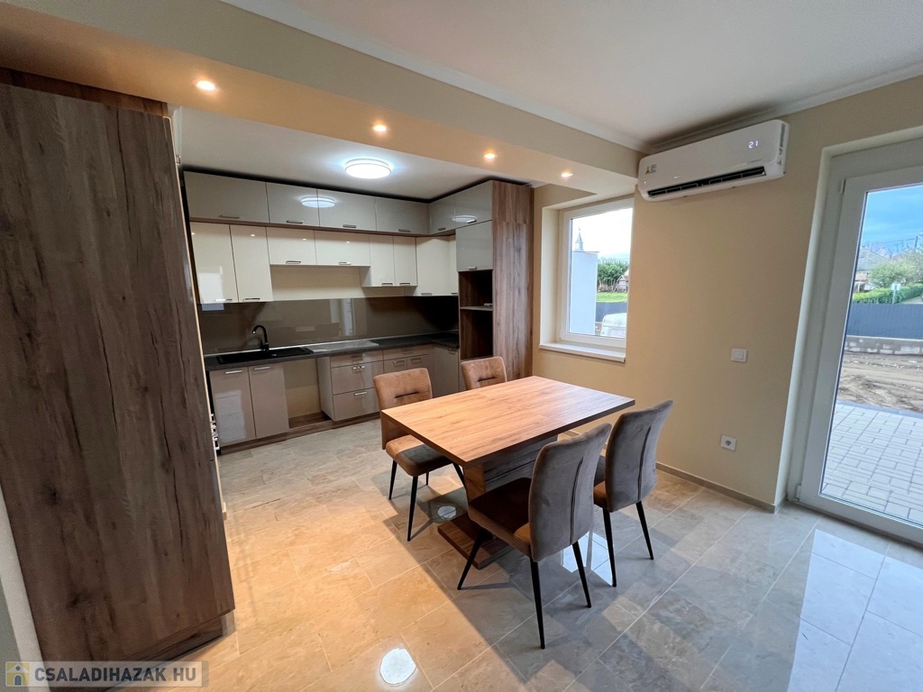 Sényő rendezett, csendes környezetében kínálunk megvételre egy 74 m²-es, új építésű, korszerű ikerházat, amely minőségi anyagok felhasználásával, kiváló hőszigeteléssel készült. Az ingatlan energiatakarékos hőszivattyús fűtéssel és klímával felszerelt, így alacsony rezsiköltséget biztosít.