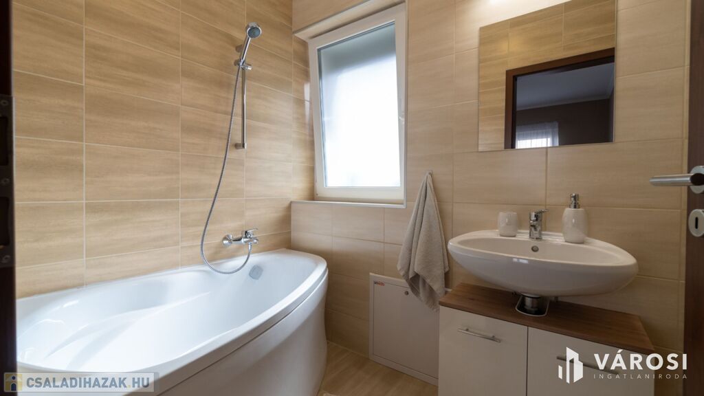 A házban műanyag nyílászárók kerültek: DECCO 70, fehér műanyag, 6 légkamrás argongázzal töltött, 3 rétegű üvegezéssel, tehát rendkívül jó hőszigetelő képességük van. Minden nyílászárón rejtett fehér színű redőny, és minden ablakon rejtett szúnyogháló található. Az ikerházban a fűtést gázcirkó kazán biztosítja padlófűtéses hőleadással. A tikkasztó nyári napokat 2 db Daikin WiFi-s klíma teszi kellemessé (földszinten és emeleten is 1-1). A biztonságot riasztó rendszer garantálja.