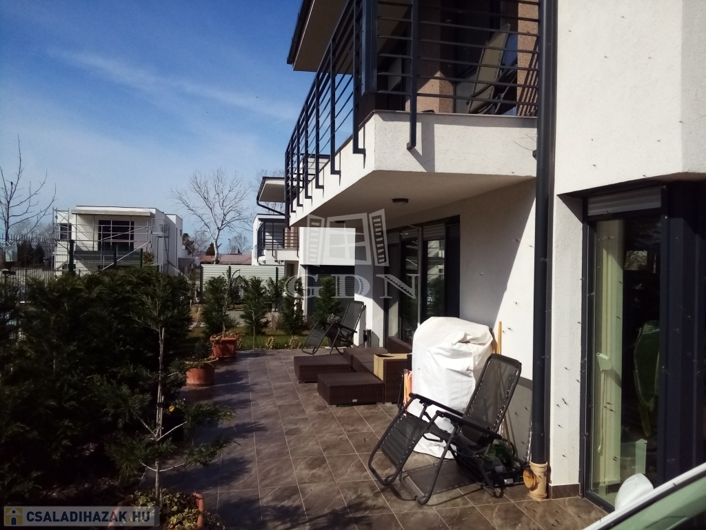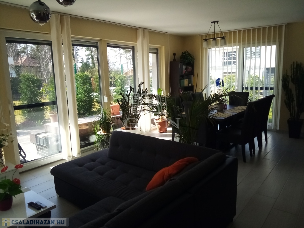 Siófok aranyparton, strandhoz közel eladó egy gyönyörű, két szintes, minőségi kivitelezésű, kertkapcsolatos, amerikai konyhás, nappali plusz három hálószobás, két fürdő - wc, kamra helyiségekből álló újszerű állapotú családi ház. A házat gondozott kert öleli ahol egy nagy és részben fedett pihenőterasz is helyet kapott. Itt található továbbá a zárt gépkocsibeálló és egy kerti tároló is. A ház földszintjén található a kertkapcsolatos nappali, nagyon nívós, gépesített konyha - étkező egység, egy vendég mosdó zuhannyal és egy kis tároló. Az emeleten kapott helyet a családi fürdő (wc - vel, fürdőkáddal), valamint három hálószoba amelyből kettő egy közös erkélyre nyílik. A ház klimatizált, akár teljes berendezéssel együtt birtokba vehető. Kiválóan alkalmas mind állandó otthonnak, mind nyaraltatásra, befektetésnek. További információkért hívjon!