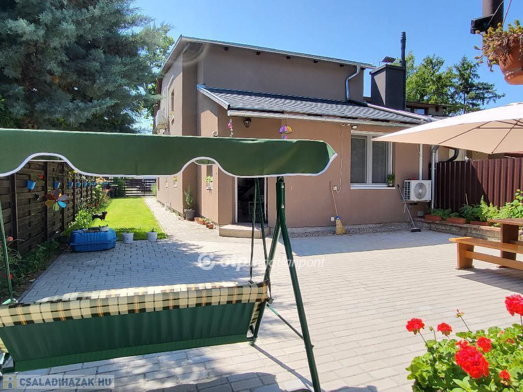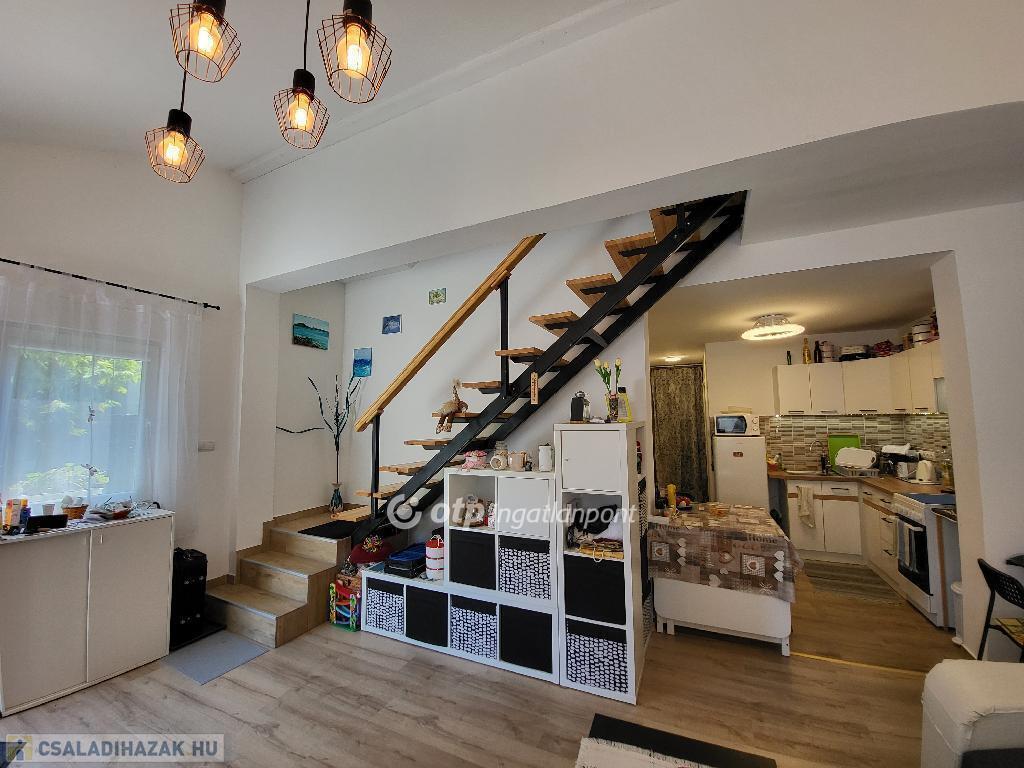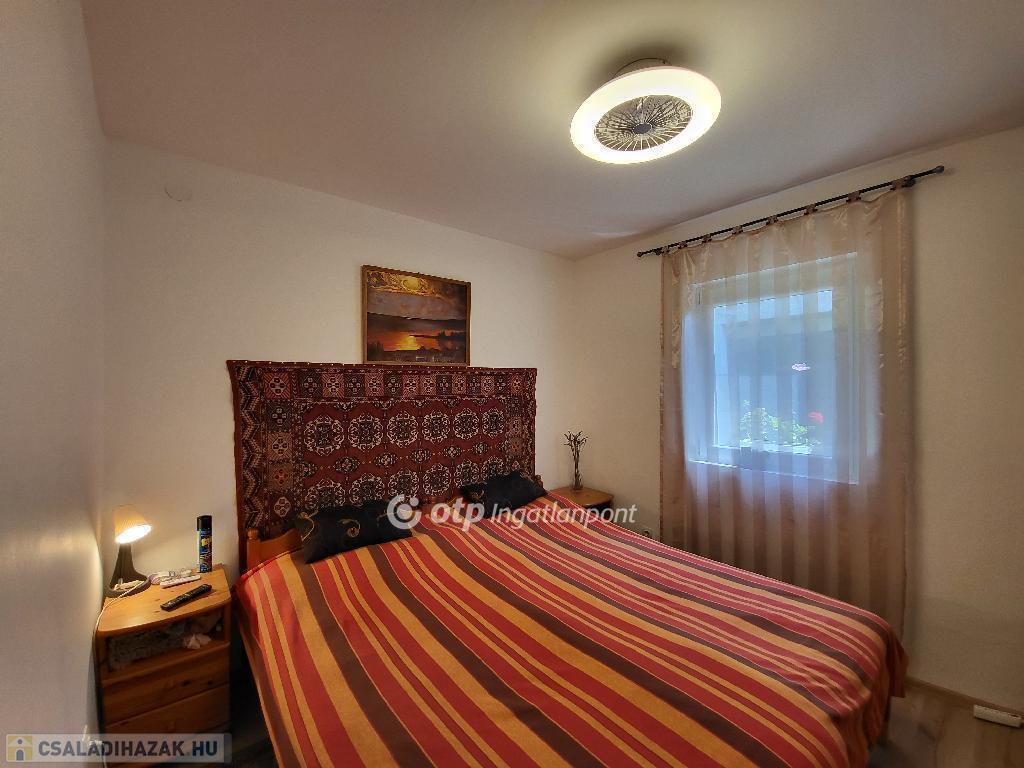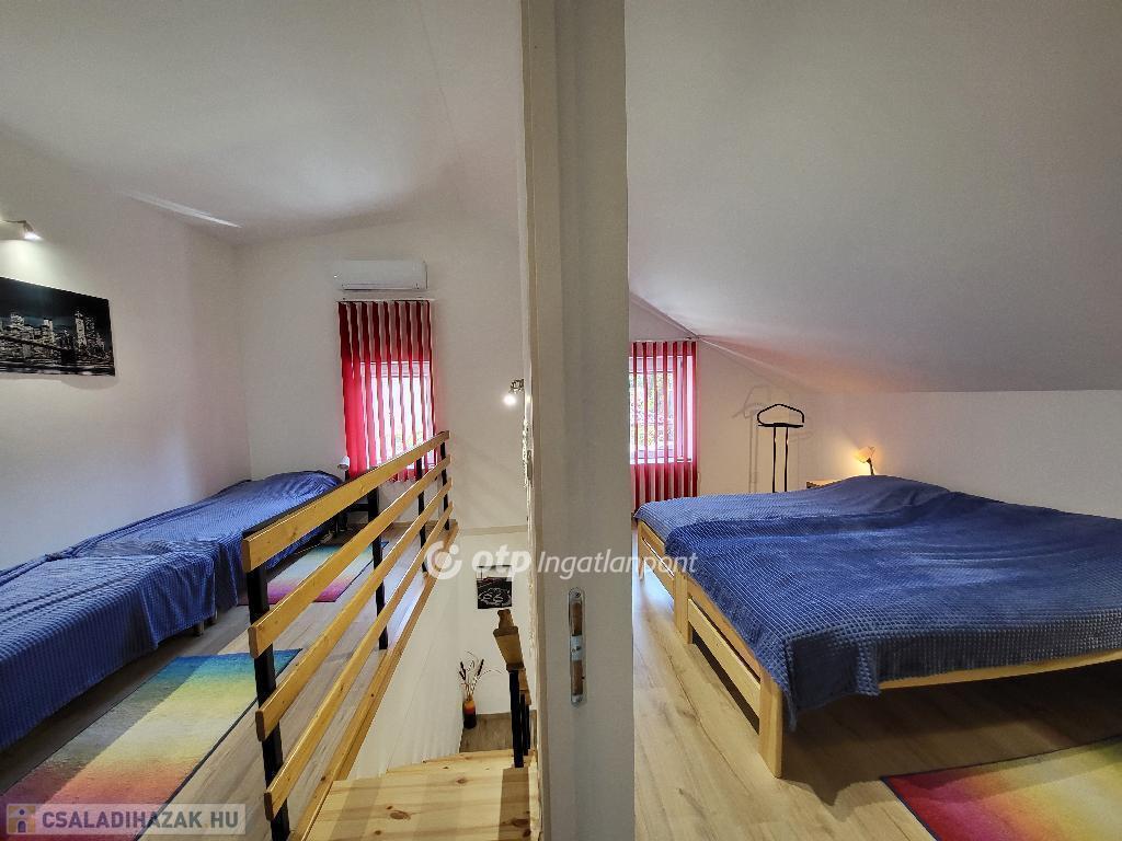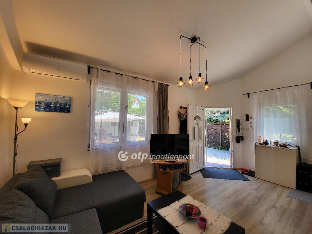 Balaton Déli part, Siófok, 135 m2 ikerház, 375 m2 telek eladó. A kivett hétvégi házként nyilvántartott, önálló helyrajzi számú ingatlanban két apartman került kialakításra. A 4 éve teljeskörűen felújított, 129 m2-es ház lakóterét növeli egy hangulatos, 13 m2-es terasz, a jól megtervezett udvaron pedig füves, virágos kert, 50 m2-es térkövezett terület, valamint garázs és egyéb melléképület is helyet kapott, így minden biztosított a mindennapi élet teendőihez vagy a pihentető, feltöltő nyaraláshoz. A ház fűtéséről és hűtéséről távolról irányítható klímák gondoskodnak, továbbá minden szobában megoldott az elektromos fűtőpanel működtetése, a telekre bevezetett gáz pedig a hagyományos fűtési rendszer kialakítását is lehetővé teszi. A két szintes apartmanok igény szerint összenyithatók, így akár egy nagy család részére is ideális lehetőség. Az ingatlan elhelyezkedésének és kialakításának köszönhetően alkalmas akár többgenerációs családoknak is állandó lakhatásra vagy nyaralásra, de befektetésként, részben vagy egészben kiadásra is kiváló, ritka lehetőség. Óvoda, iskola, tömegközlekedés, bevásárlási lehetőség, egészségügyi intézmény, a Belváros, a Kikötő könnyen elérhető, a Szabadstrand pedig csak pár perc séta. Bővebb információért keressen telefonon!