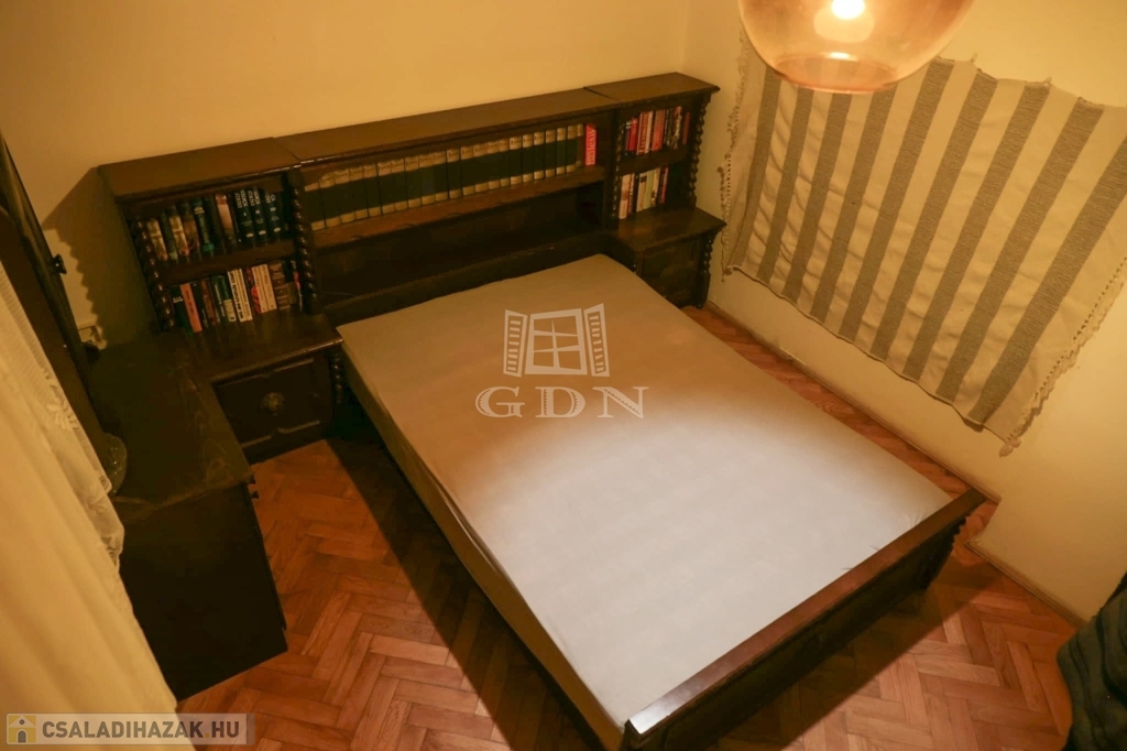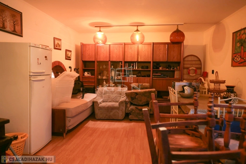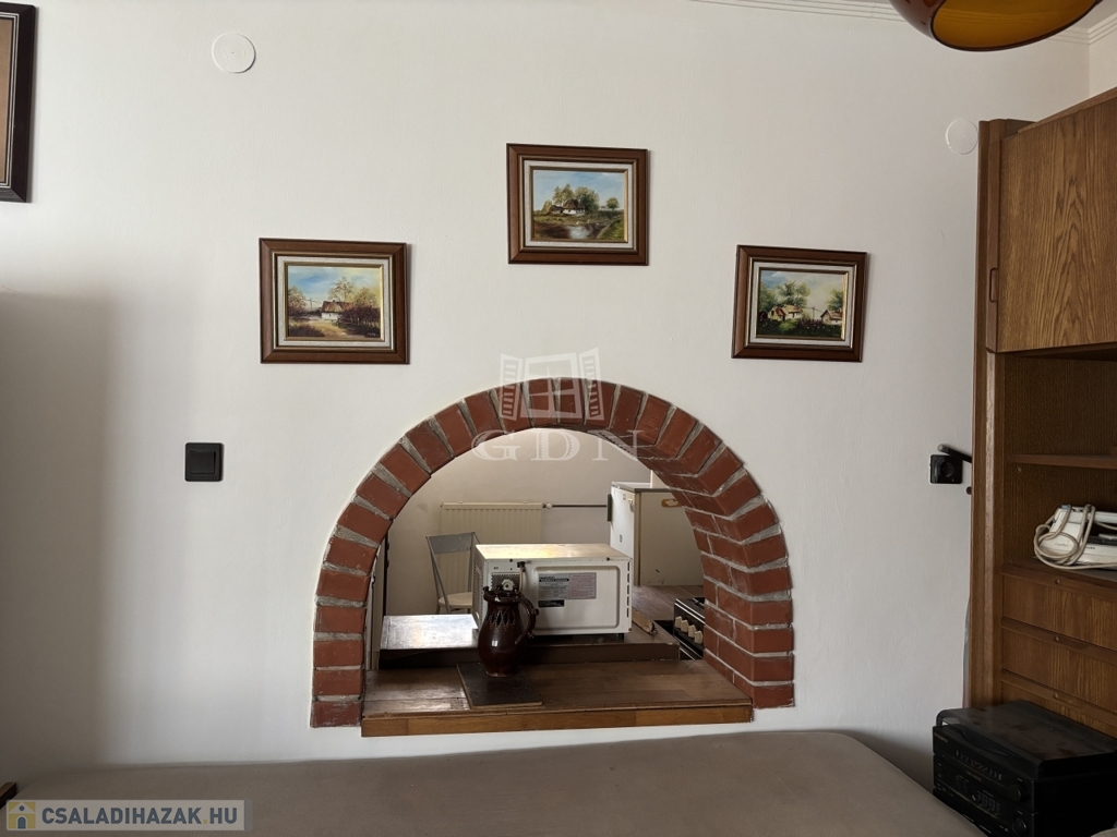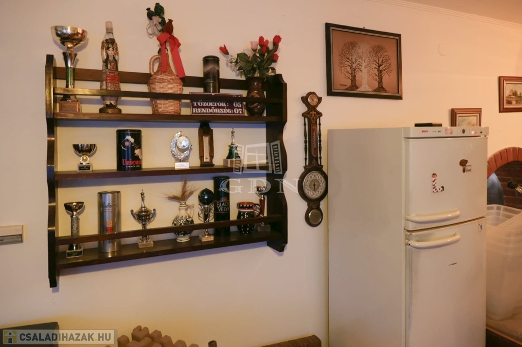 Előkertes, gáz-cirkó fűtéses, napelemes épület.