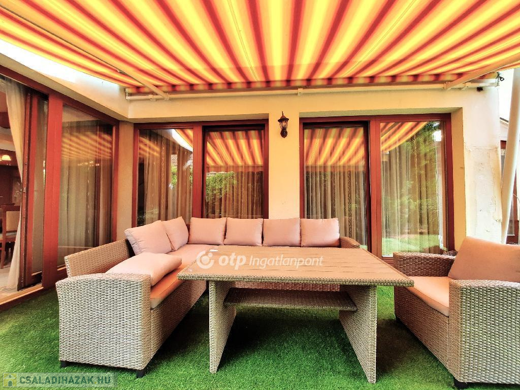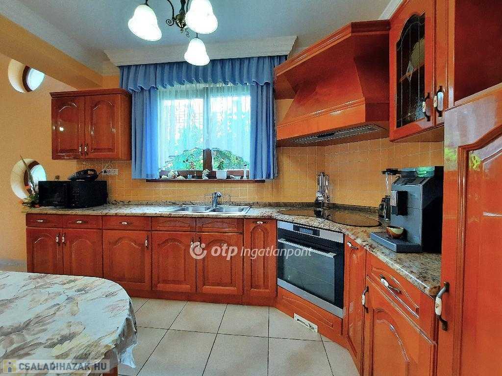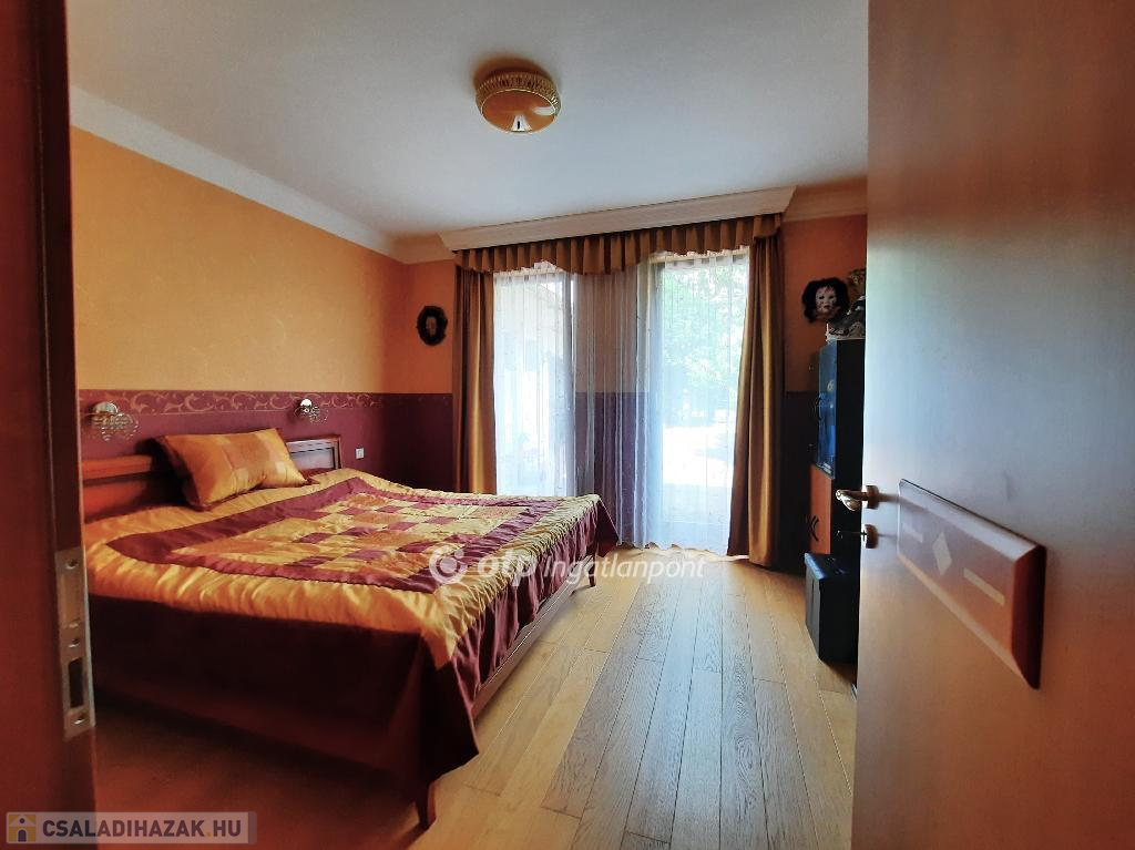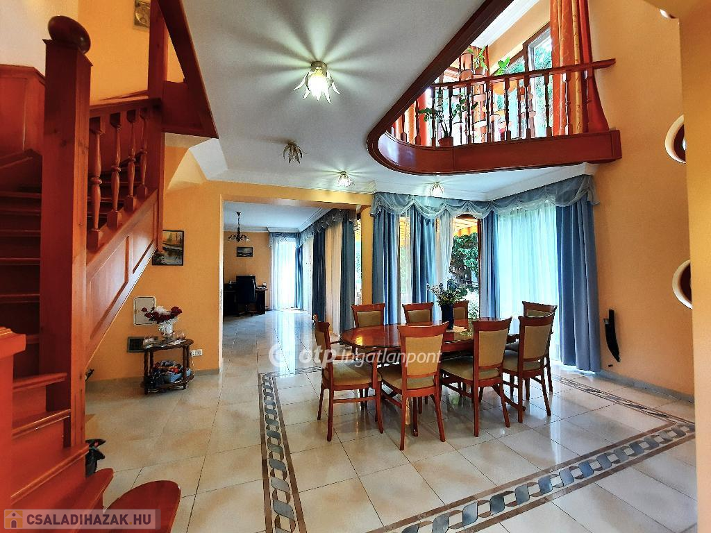 Balaton déli parton, Siófokon 270 m2-es családi ház eladó. Az ingatlan kertvárosi részen, csendes utcában helyezkedik el. A kétszintes épület 2 lakóegységet tartalmaz. A 2006-ban téglából épült lakóház a kor igényeinek megfelelő magas színvonalon, kőzetgyapot homlokzati hőszigeteléssel, természetes pala tetőhéjazattal, egyedi belsőépítészeti megoldásokkal került kivitelezésre. A földszinten külön bejáratú garzonlakás épült, ez akár iroda vagy otthoni vállalkozás céljára is alkalmas lehet. A nagyobb lakrész - földszint + teljes értékű emelet - több generáció együttélésére is alkalmas lehet. A földszinten lakóterek, és hálószoba, emeleten 4 háló és 2 fürdőszoba került kialakításra. Tervek szerint a lakótérből egy télikerten át wellness tér kerül kialakításra, medencetér, szauna, tetőtéri pihenőszoba, tetőterasz, ezek jelenleg szerkezetkész állapotban vannak. Az épület fűtése és melegvíz ellátása gáz kondenzációs kazánnal kivitelezett. A hőleadás módja padlófűtés és falfűtés, használati melegvíz tároló 300 literes. A gépészeti rendszernél medence vízgépészet csövezése elkészült. Épületen belül kétállásos, fűtött garázs áll rendelkezésre. A telek területe 991 m2, a parkosított kertben automata öntözőrendszer fúrt kútról működik. Balaton-part és városközpont gyalog 800 méter távolságban van. Bővebb információért keressen telefonon!