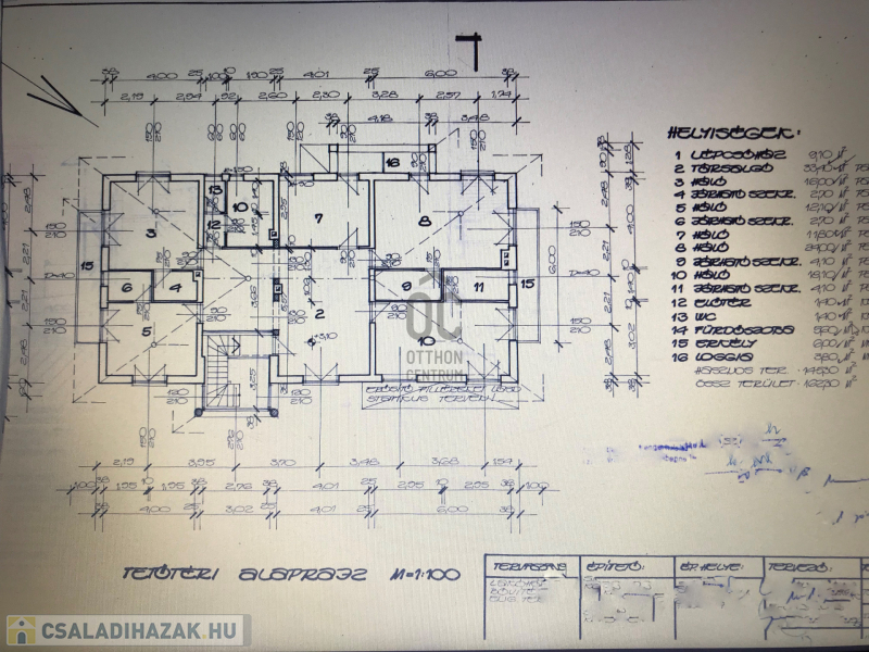Emelet: nappali-étkező-konyha 33 m2, 7 szoba /mindegyikben fürdőszoba-wc és erkély.