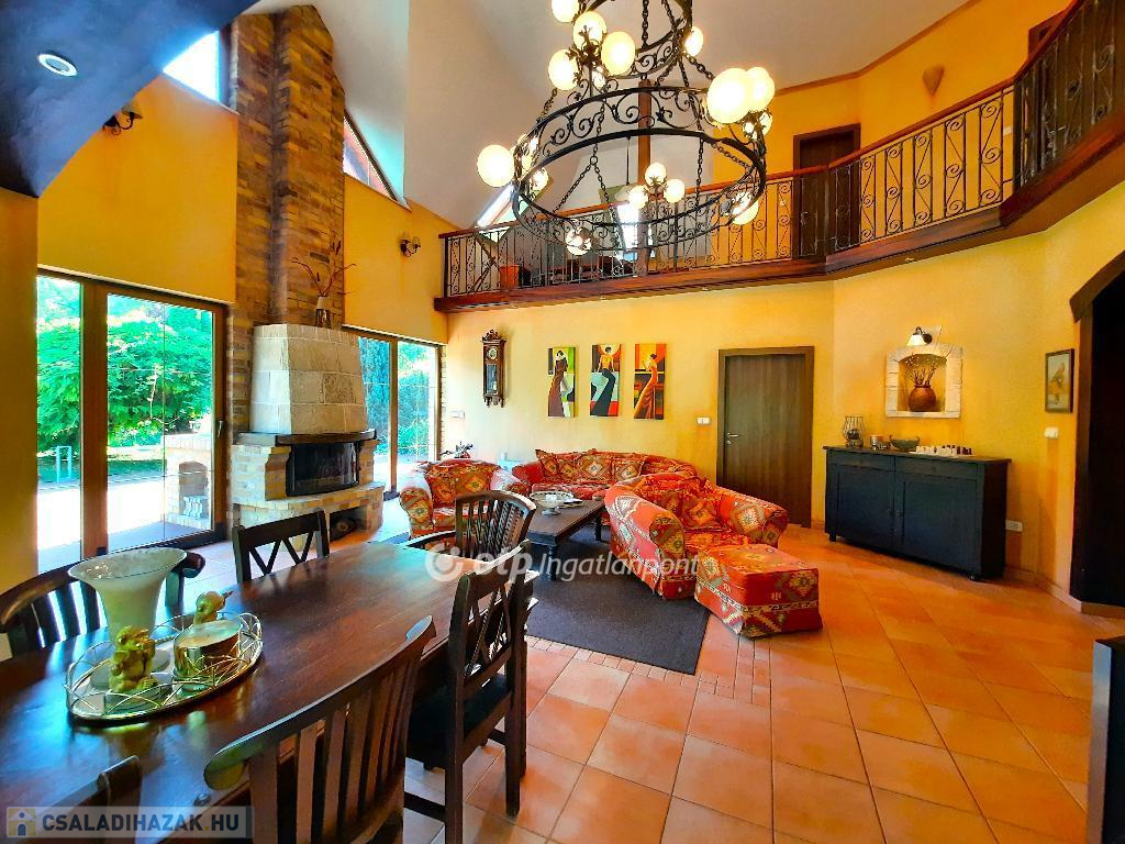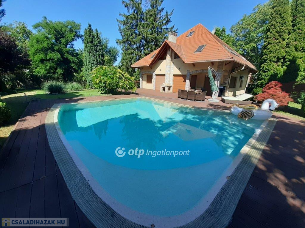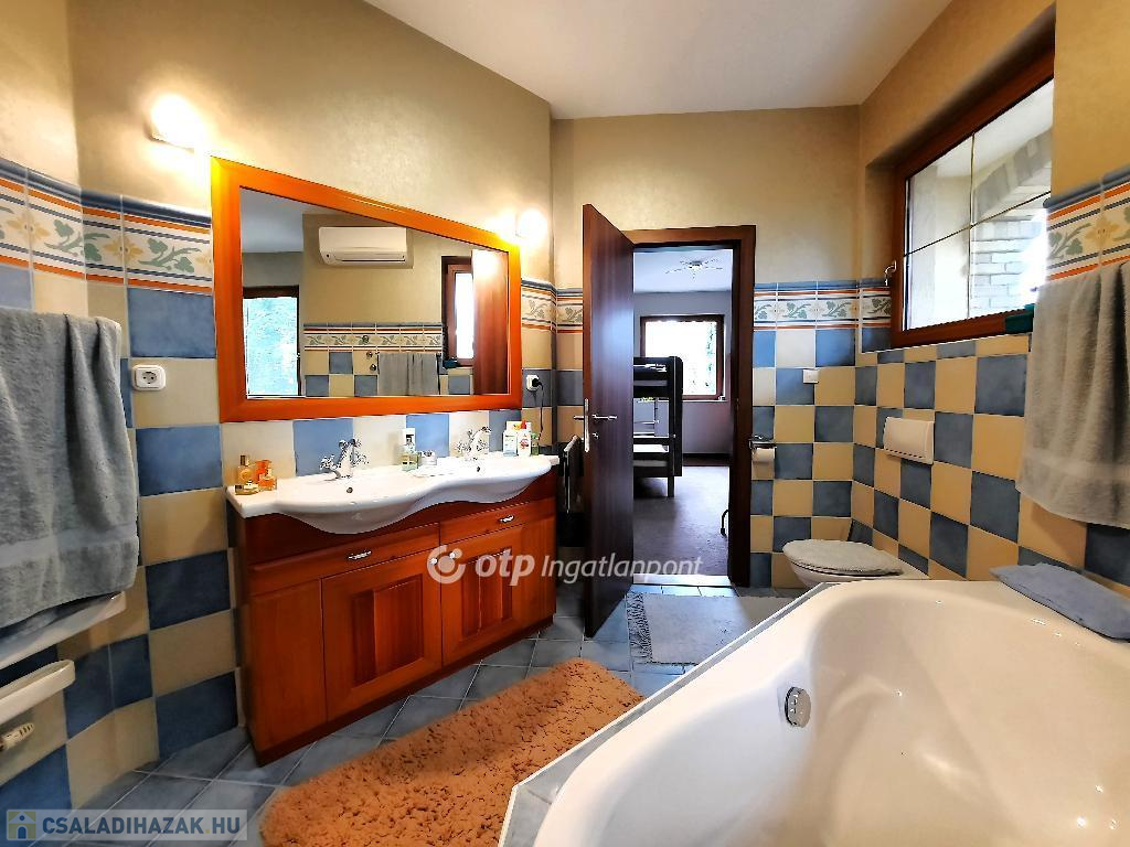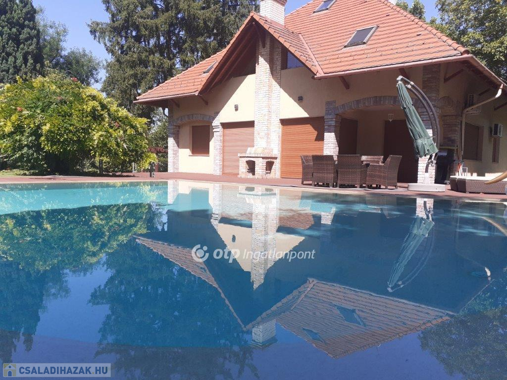 Balaton déli partján, Siófokon, 280 m2-es családi ház eladó. Az ingatlan Szabadifürdő városrész csendes utcájában helyezkedik el, Balaton-part 900 méterre, M7 autópálya csatlakozás 2400 méter távolságban van. Az átlagosnál nagyobb méretű telek területe, ami 3 ingatlan összevonásával alakult ki: 2681 m2. A parkszerű igényes kertépítészeti elemekkel körülvett lakóépület intim külső terekkel kapcsolódik a belső lakótérhez. A kertben úszómedence, kerti tó, grillezőhely, kerti lak épített elemek találhatók parkolókkal, kerti utakkal és sétányokkal. A kertfenntartáshoz fúrt kút és automata öntözőrendszer került létesítésre. A telek súlypontjában elhelyezett lakóépület belső terei kedvező benapozást biztosítanak. A három szintes épület földszintjén lakótér teraszkapcsolatokkal és hálószobák vizesblokkokkal, tetőtérben galéria és hálószoba funkciók vizesblokkal kerültek kialakításra. A pinceszinten kazánház és tároló kapott helyet. A belső terek egyedi építészeti megoldásokkal kivitelezettek, igényes felületekkel, burkolatokkal. A villaépület alkalmas állandó lakhatásra vagy nyaralás céljára is. Az ár tartalmazza a teljes berendezést. Bővebb információért keressen telefonon!