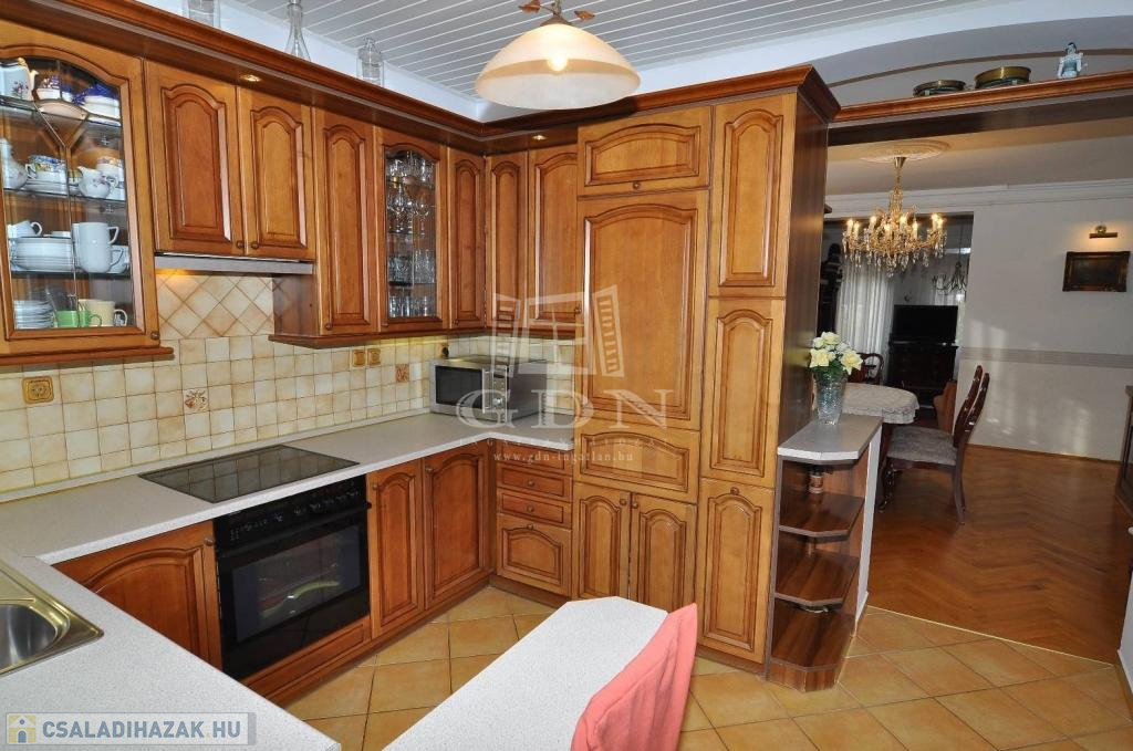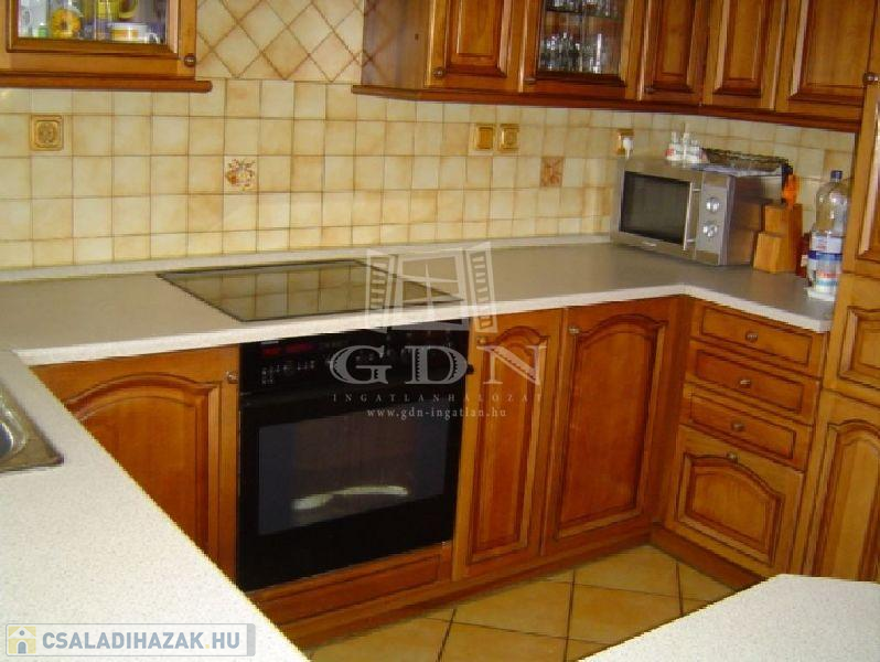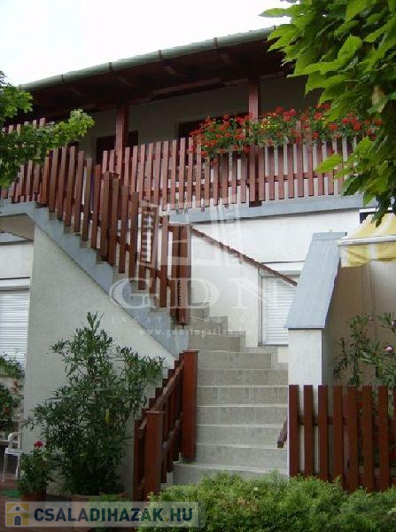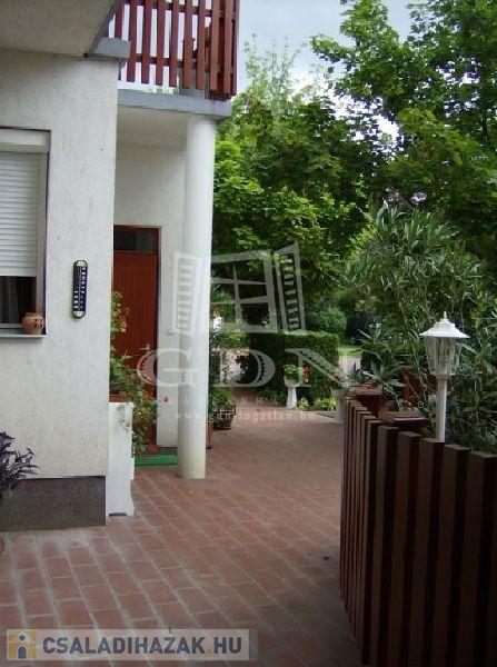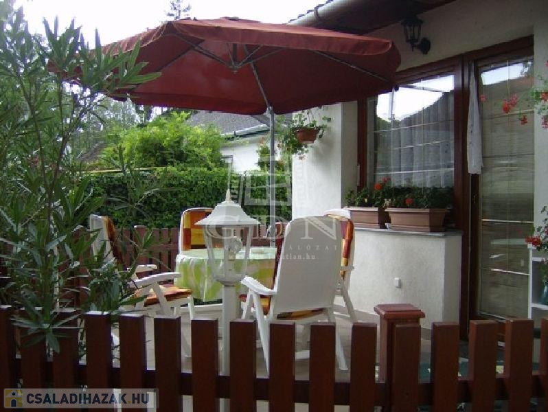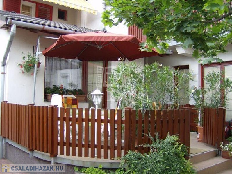 A gondosan karbantartott, parkosított kert rendezett megjelenést biztosít, amely egyértelműen a tulajdonosi odafigyelést tükrözi.