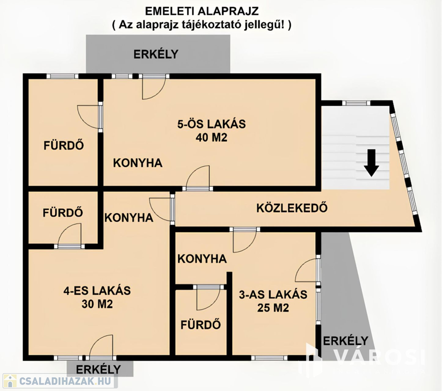 - Egy kétszintes, 220 m²-es családi ház, amelyben 5 lakóegység lett kialakítva, mindegyik klimatizált, konyhával és fürdőszobával felszerelt.