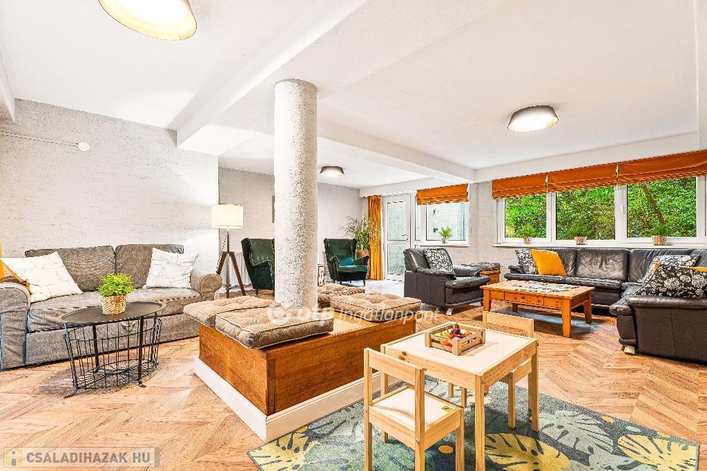 Balaton déli parton, Siófokon 592 m2 lakóház eladó. A 10 kiadható egységgel és 1 lakással rendelkező ingatlan a Foki-hegy kertvárosi részén helyezkedik el. Az igényesen megépített, egyedi belsőépítészeti megoldásokkal, 2001-ben épült ház 3 éve teljes felújításon esett át, jó állapotban van. Az épület földszint plusz emelet kialakítású, földszinten teraszokkal, emeleten erkélyekkel rendelkezik. A fűtést és melegvíz ellátást 3 kombi, kondenzációs kazán biztosítja. A szobaegységekben hűtő-fűtő klímaberendezések is rendelkezésre állnak. Az épület két utcáról megközelíthető, így akár két különálló lakóépületként is hasznosítható lehet. Az épületben szauna, kiszolgáló terek, háztartási helyiség, mosókonyha és 3 egységes garázs is helyet kapott. Az ingatlan 32 fő elhelyezésére ad lehetőséget, kereskedelmi szálláshely, apartmanház is lehet. A parkosított telek terület 1163 m2, közlekedő terek térkővel burkoltak. Az ingatlan teljes berendezéssel együtt eladó, melyet a vételár tartalmaz. Balaton-part, szabadstrand gyalog 800 méterre, városközpont 1800 méterre elérhető. A közelben buszmegálló, iskola, gyógyszertár, vásárlási lehetőség van.