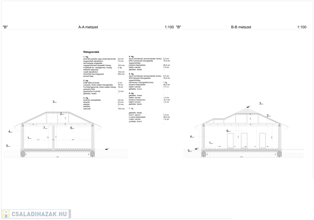 A tartószerkezeti falak 30-as porotherm téglából készültek, a padlón 10cm lépésálló szigeteléssel, a homlokzatokon 15cm-es EPS szigeteléssel, a vízszintes födémen 25 cm ásvénygyapot szigeteléssel. A külső nyílászárók korszerű 6 légkamrás, 3 rétegű üvegekkel szereltek.