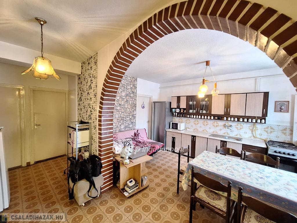 Eladásra kínálok a Balaton déli partján, Siófokon egy 85 m2-es, egyszintes, két lakrészes családi házat. Az ingatlan Siófok Kiliti városrészében helyezkedik el, kertvárosias, csendes lakóövezetben. A komfortos ház melegvizét gázbojler, fűtését helyiségenként gázkonvektor és egy egyedi fatüzelésű kályha biztosítja. A tetőtér beépíthető, 2 padlásfeljáró is ki lett alakítva. A 2215 m2-es telken gyümölcsfák, szőlő, málna és eper ültetvények találhatók, bőven adódik lehetőség gazdálkodásra, kertészkedésre. A külön bejáratú hátsó, egyszobás lakrész kiváló lehet kiadásra vagy egyedül élő családtag számára állandó otthonnak. A városrészben bevásárlási lehetőség, gyógyszertár, iskola, óvoda is biztosított, Siófok központja 4,6 km távolságra van. Várom megtisztelő hívását!