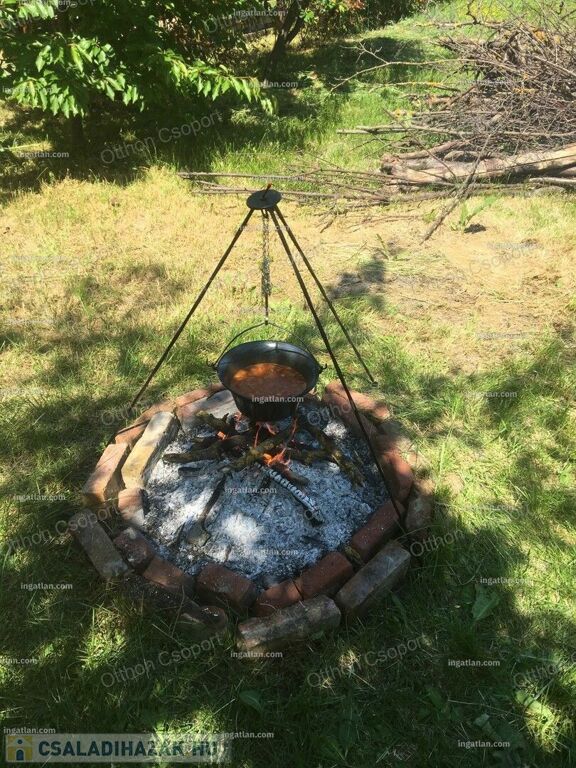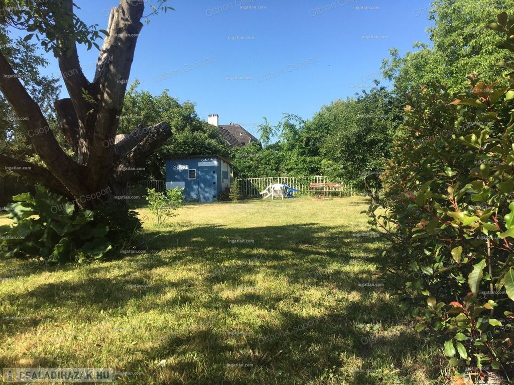 Az örömforrást adó szép és nagy hátsó kert rejtve marad még az utca gyér forgalma előtt is, intim tere csak a családé. Itt az 5 m2-es tároló és egy bográcsozásra kialakított hely mellett, jól termő dió-, meggy-, cseresznye-, sárgabarack- és almafa is van, kiegészítve egy-két tő szederrel, málnával és szőlővel, melyek öntözése a fúrt kútból megoldható.