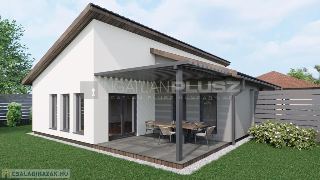 kerül kialakításra. Az épületek 1 szintesek, nem alá pincézettek. Az épület szeglemezes tetővel készül, antracit színű betoncseréppel.