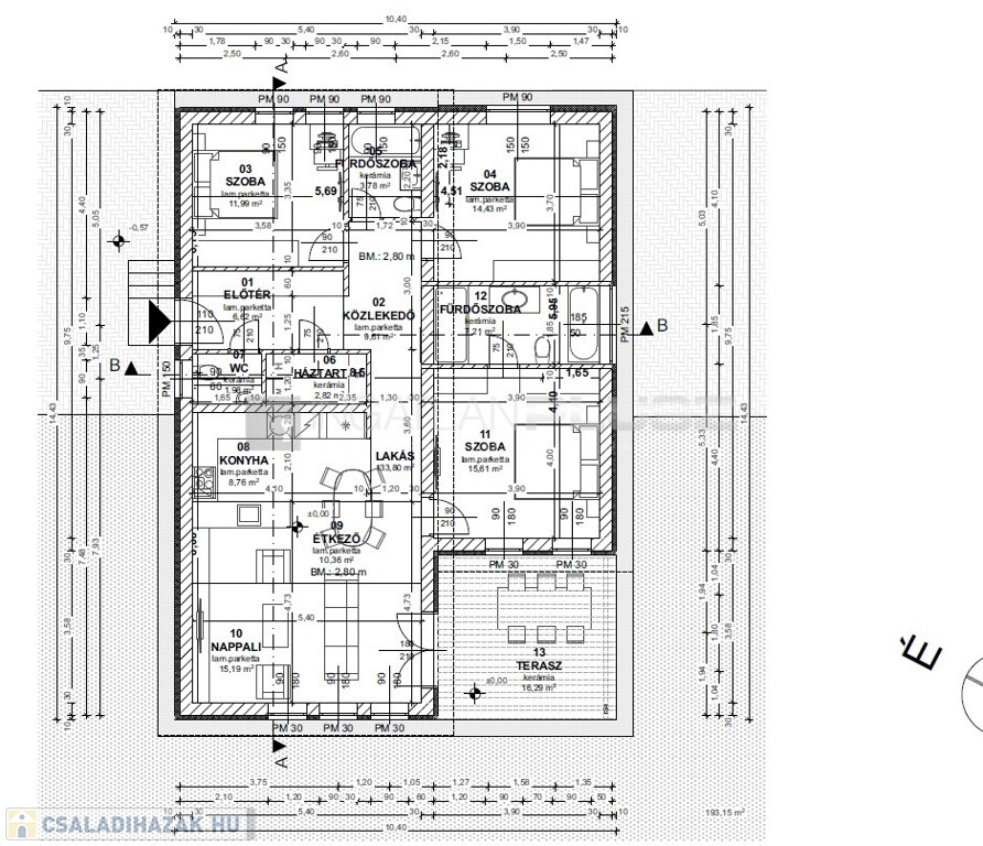 ami az 5 db családi háznál eltérő méretű, 153-191 m2.