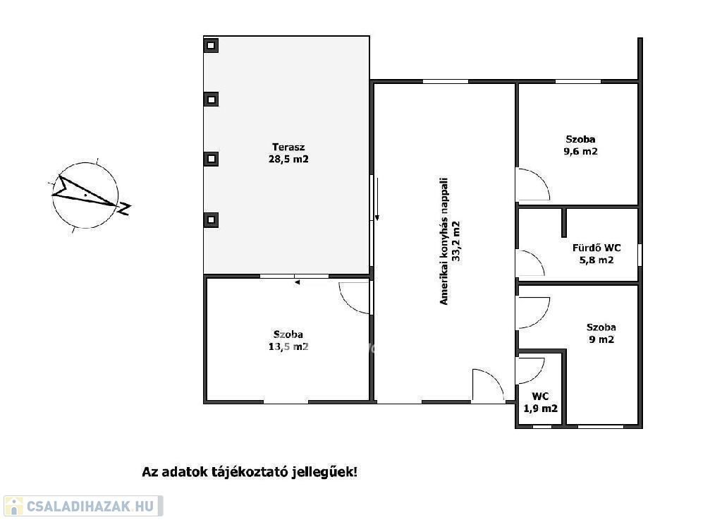 A ház egy tágas, amerikai konyhás nappalival és három külön nyíló hálószobával rendelkezik, amelyet egy nagy méretű, hangulatos terasz egészít ki - ideális helyszín a családi vagy baráti együttlétekhez. Az ablakokra redőnyök kerülnek, a terasz felé elektromos vezérlésű kivitelben. A fűtés hőszivattyúval megoldott.